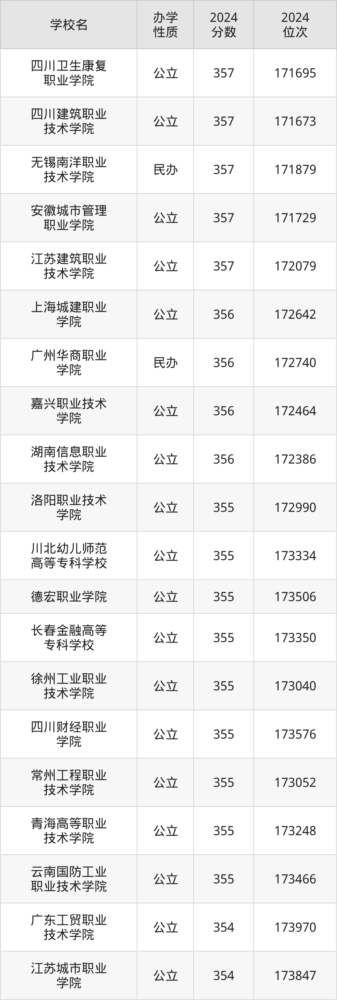 | 四川卫生康复 职业学院 | 357 | 171695 |