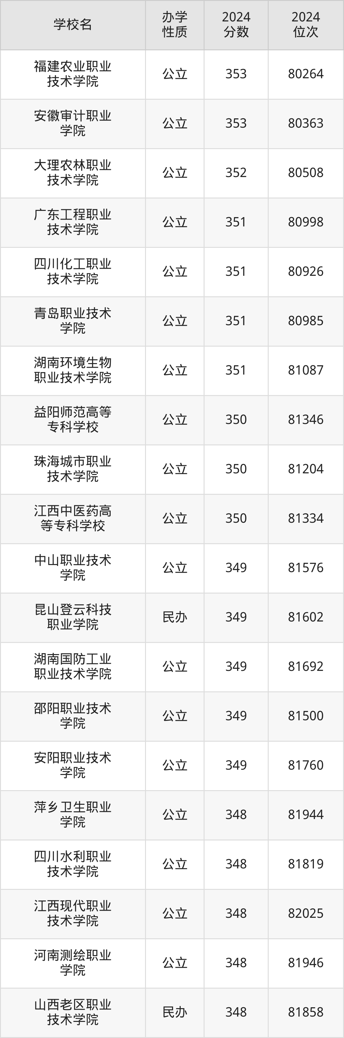 | 江西中医药高 等专科学校 | 350 | 81334 |