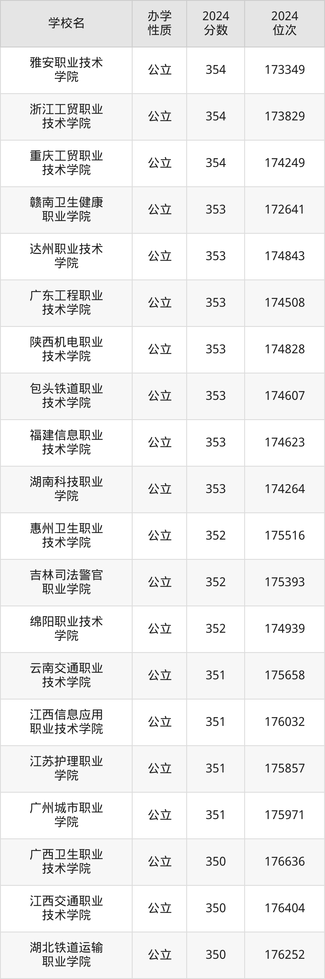 | 赣南卫生健康 职业学院 | 353 | 172641 |