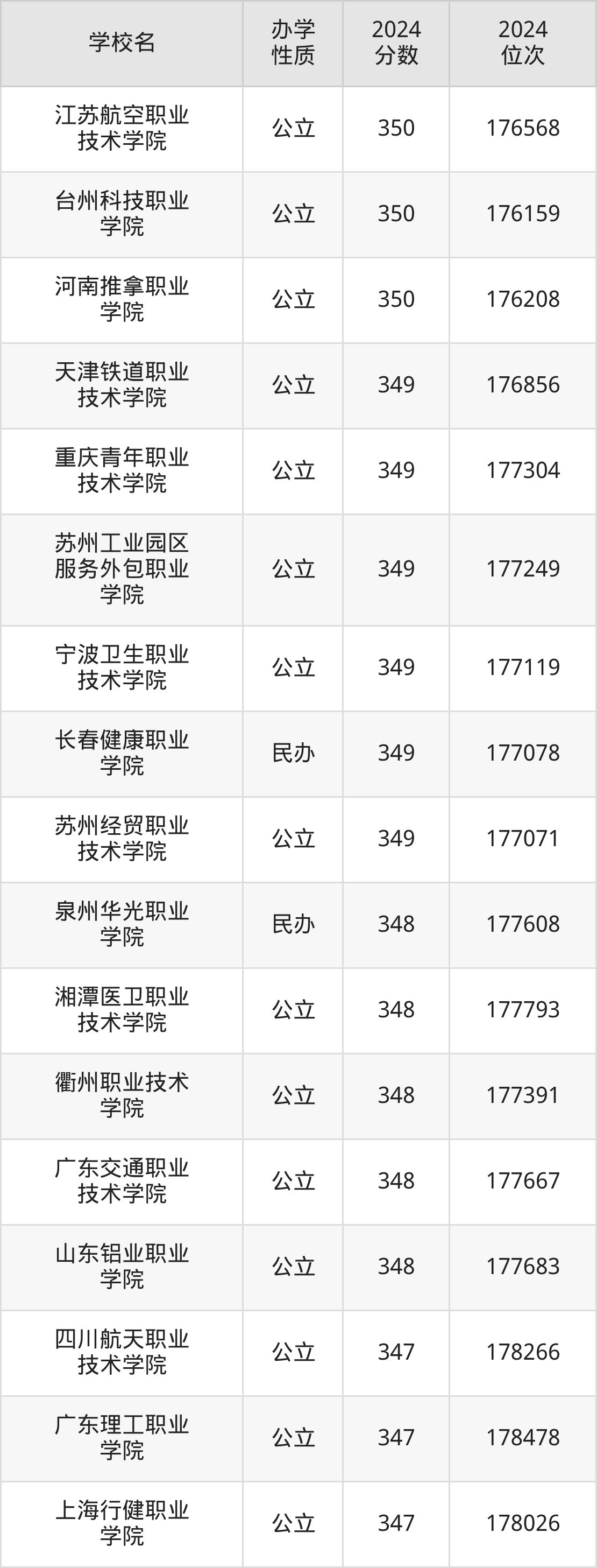 | 四川航天职业 技术学院 | 347 | 178266 |