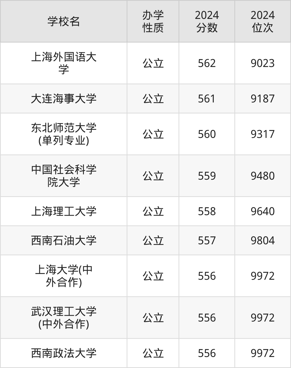 2024年内蒙古理科560分考生能上上海外国语大学、大连海事大学2所211院校,具体录取分数线及位次为: