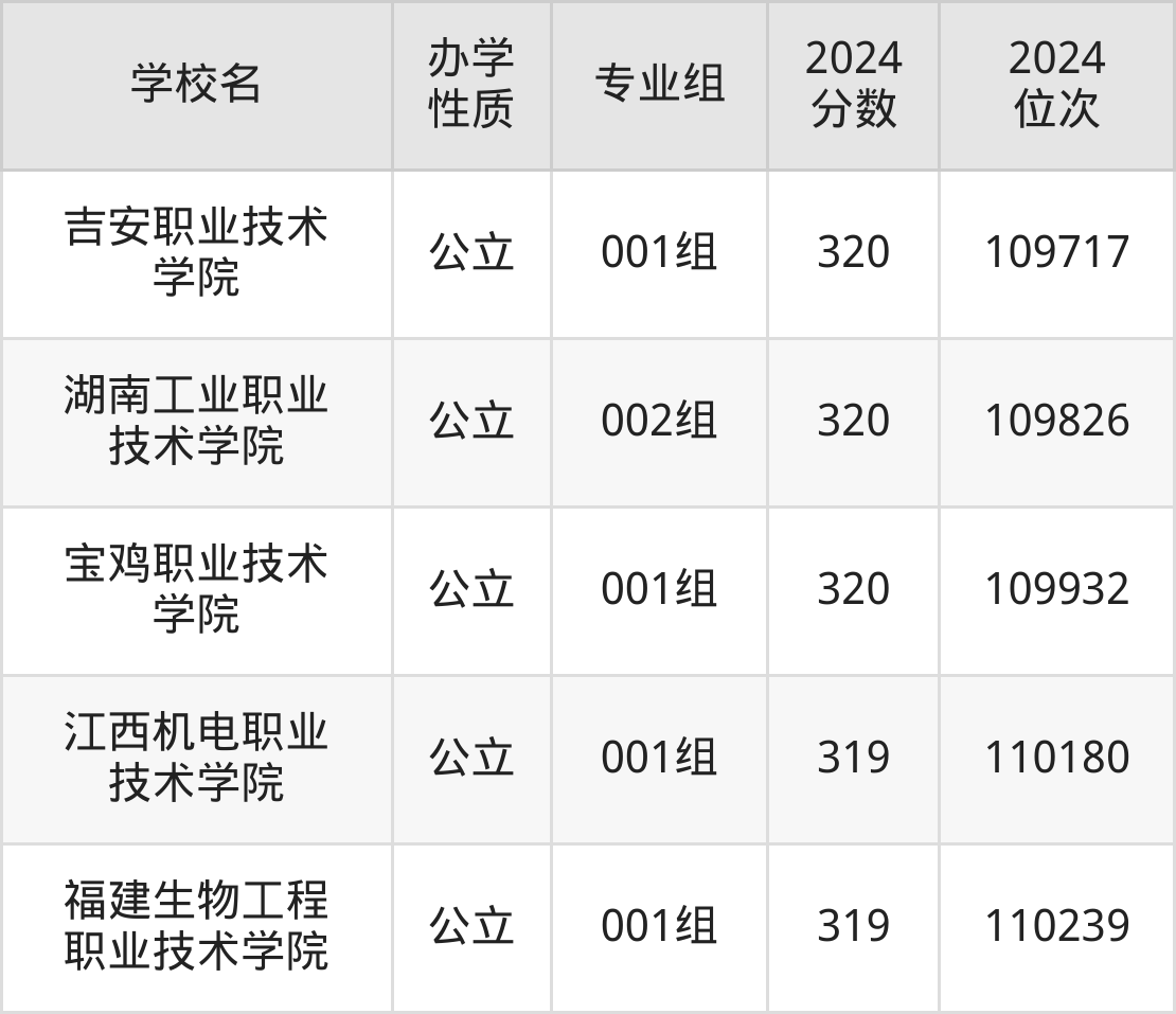 | 吉安职业技术 学院 | 001组 | 320 | 109717 |