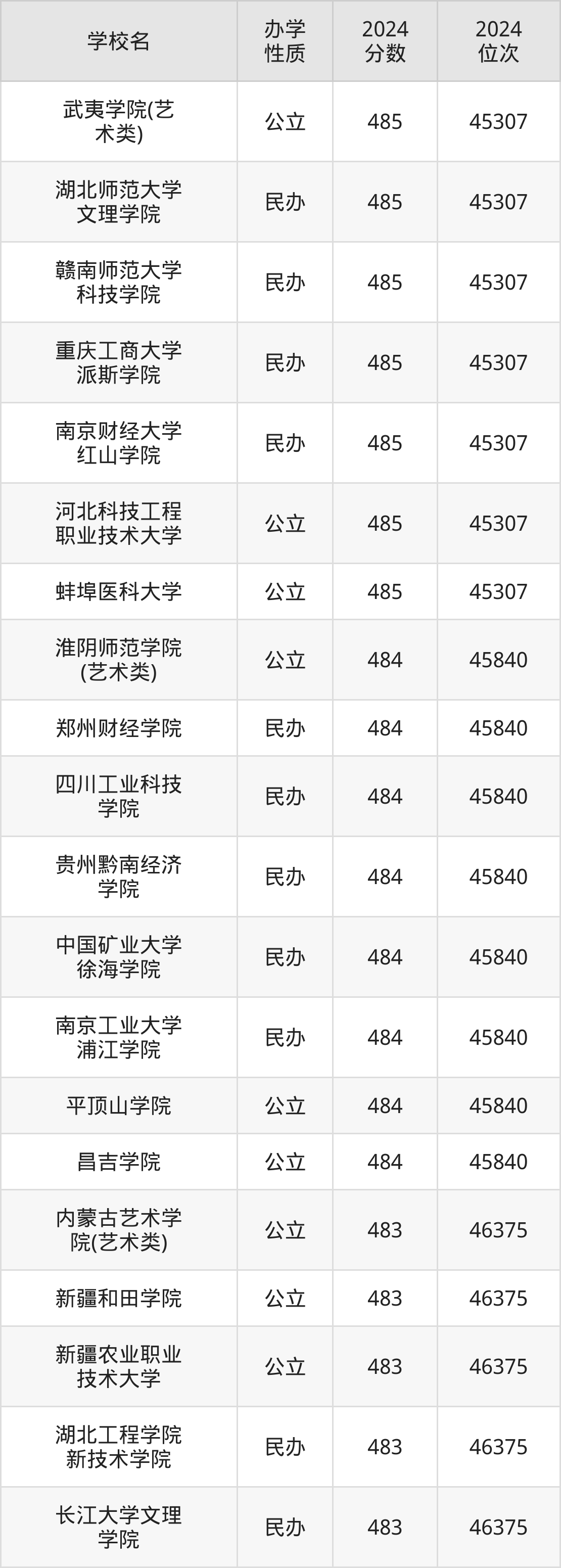 | 武夷学院(艺 术类) | 485 | 45307 |