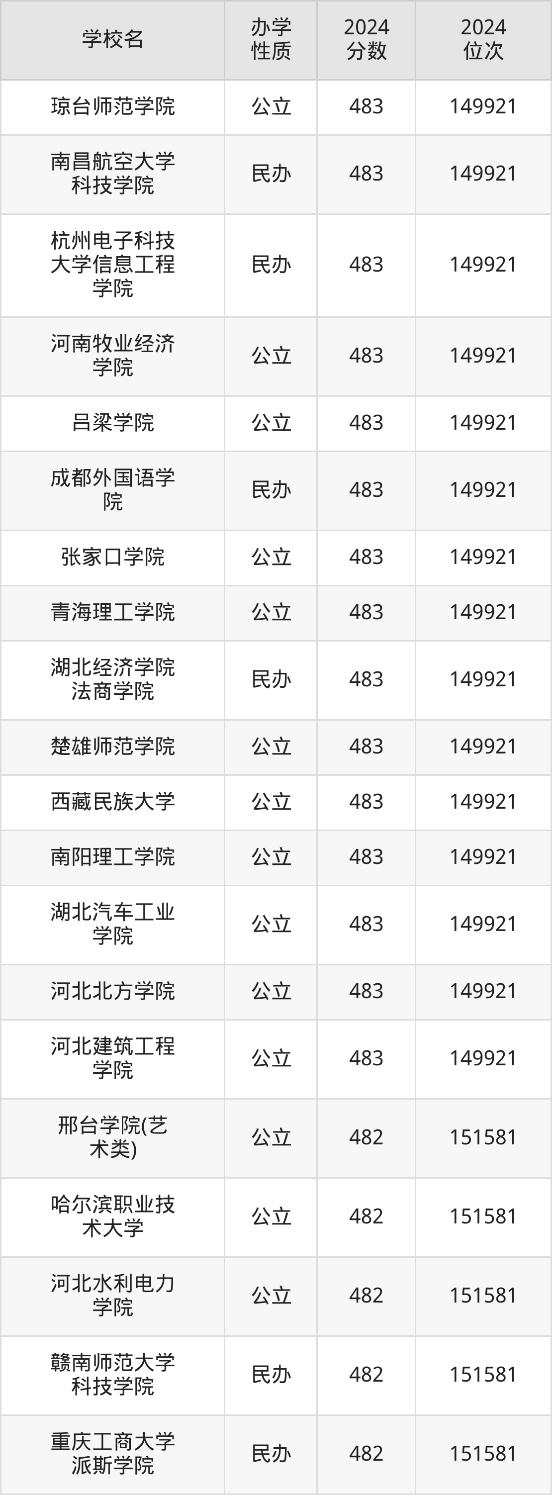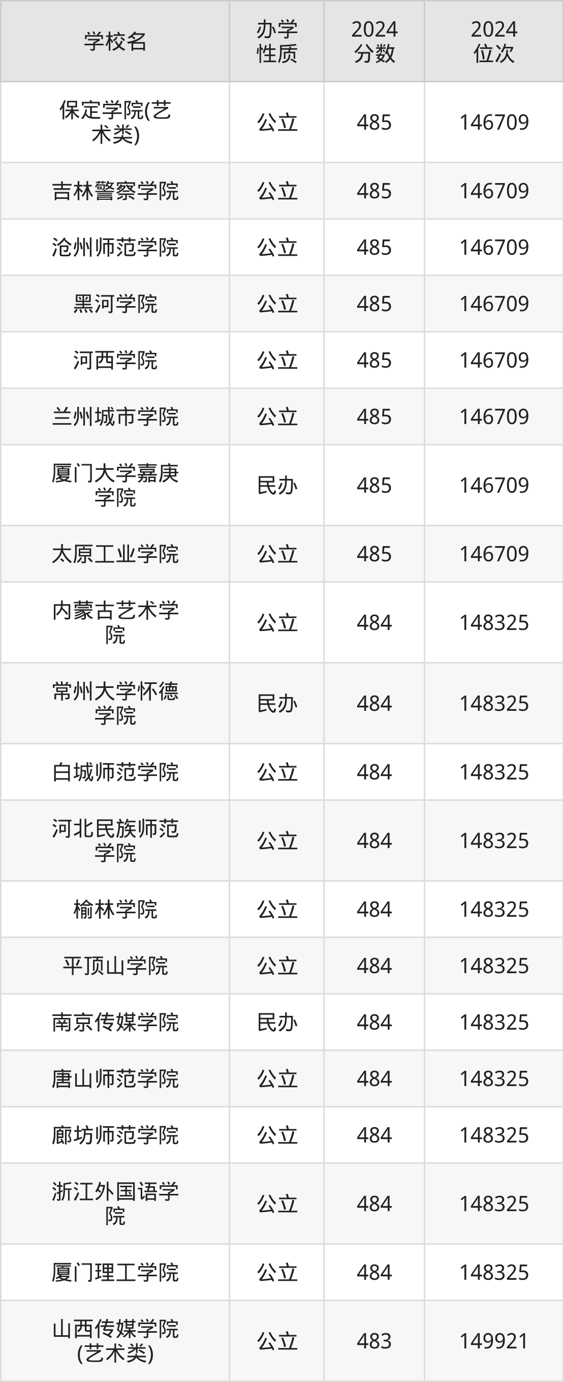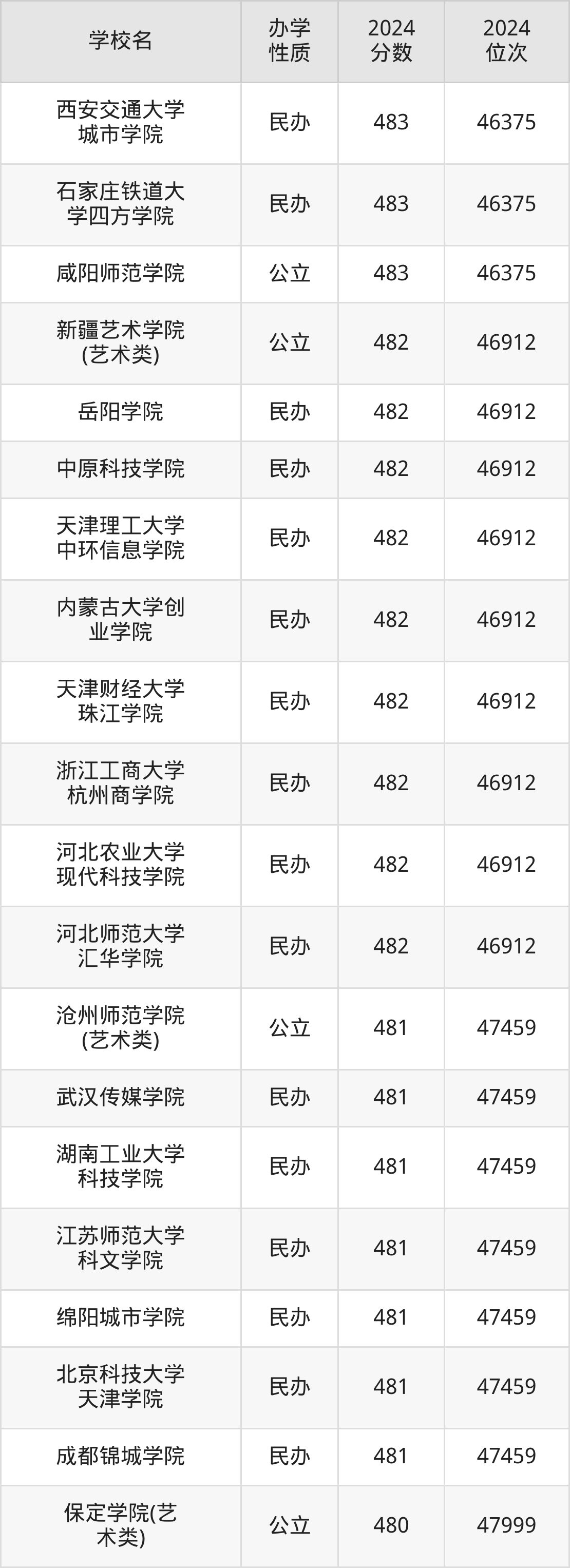 | 沧州师范学院 (艺术类) | 481 | 47459 |