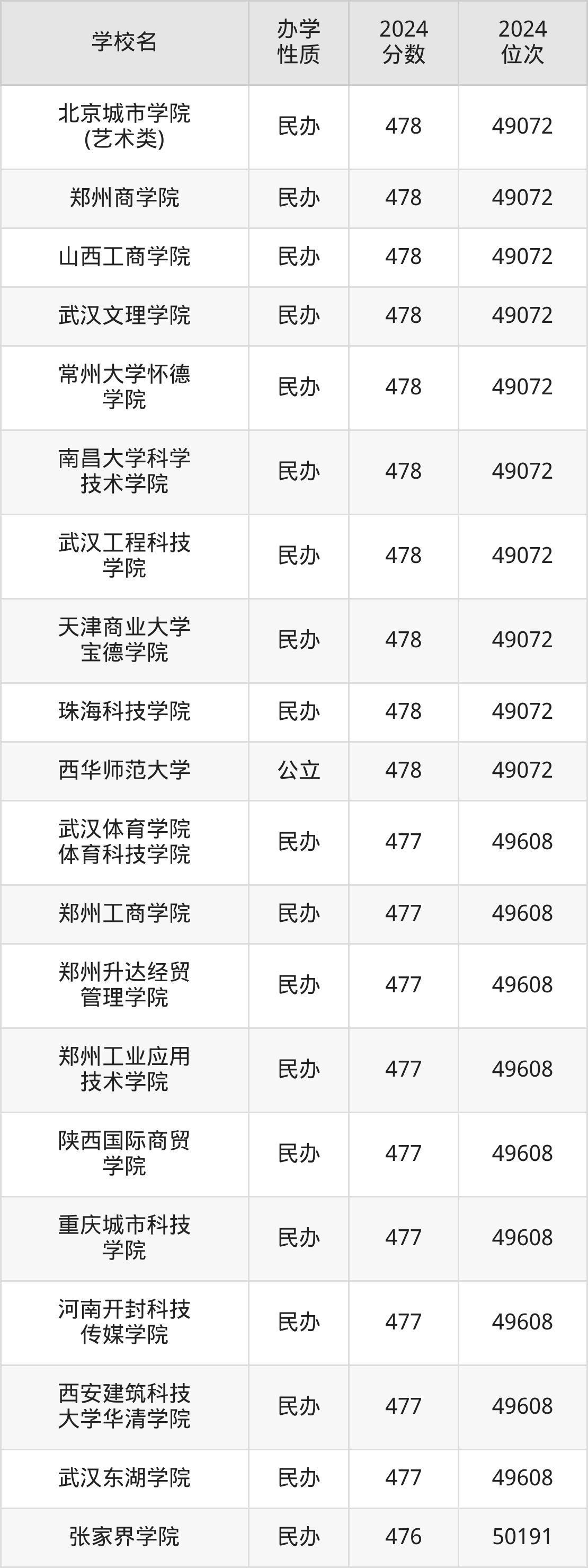 | 北京城市学院 (艺术类) | 478 | 49072 |