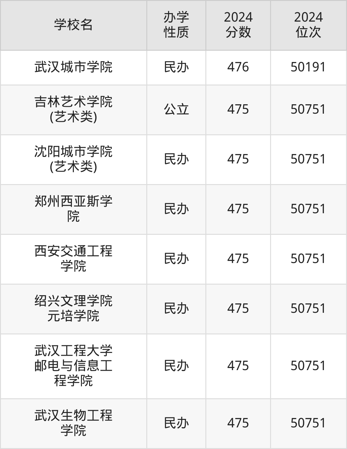 | 沈阳城市学院 (艺术类) | 475 | 50751 |