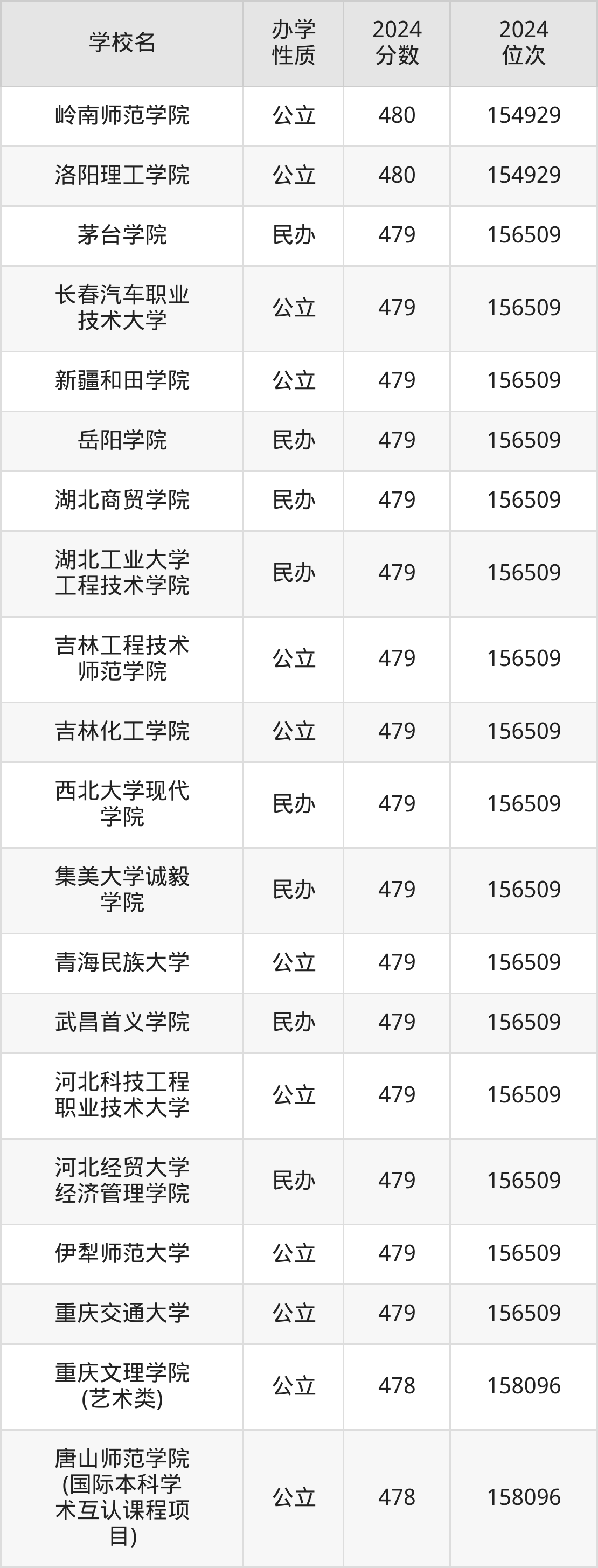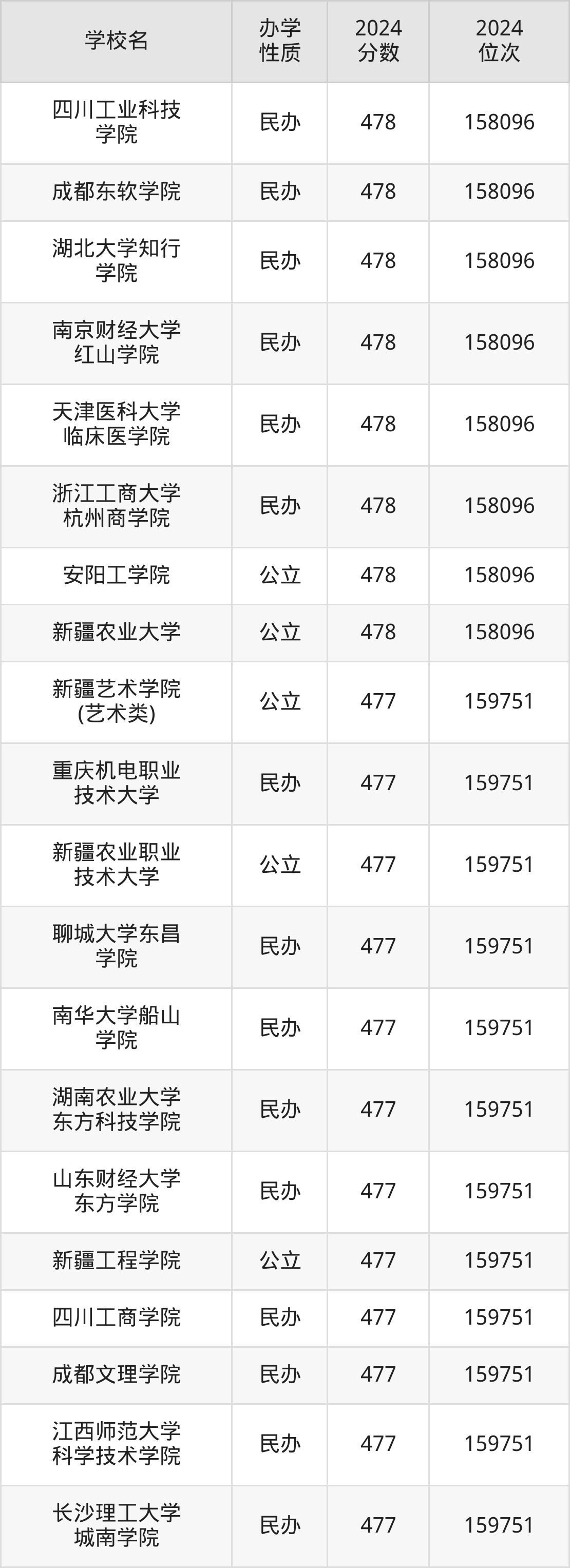 | 重庆文理学院 (艺术类) | 478 | 158096 |
