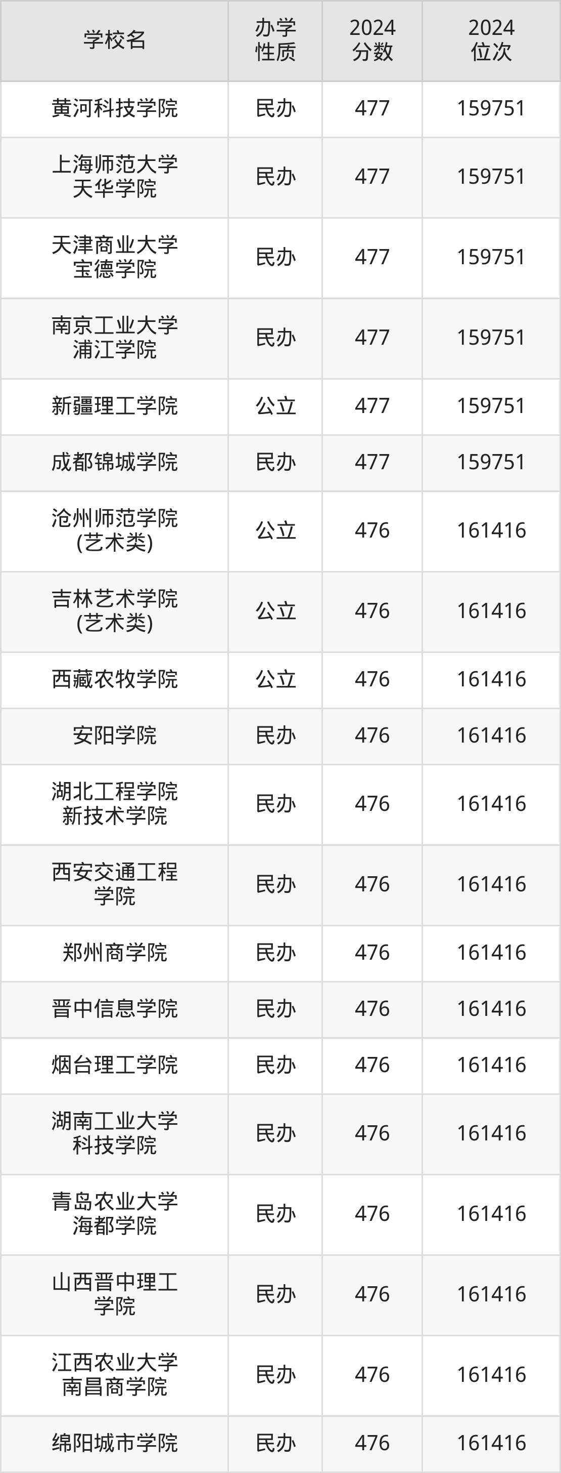 | 沧州师范学院 (艺术类) | 476 | 161416 |