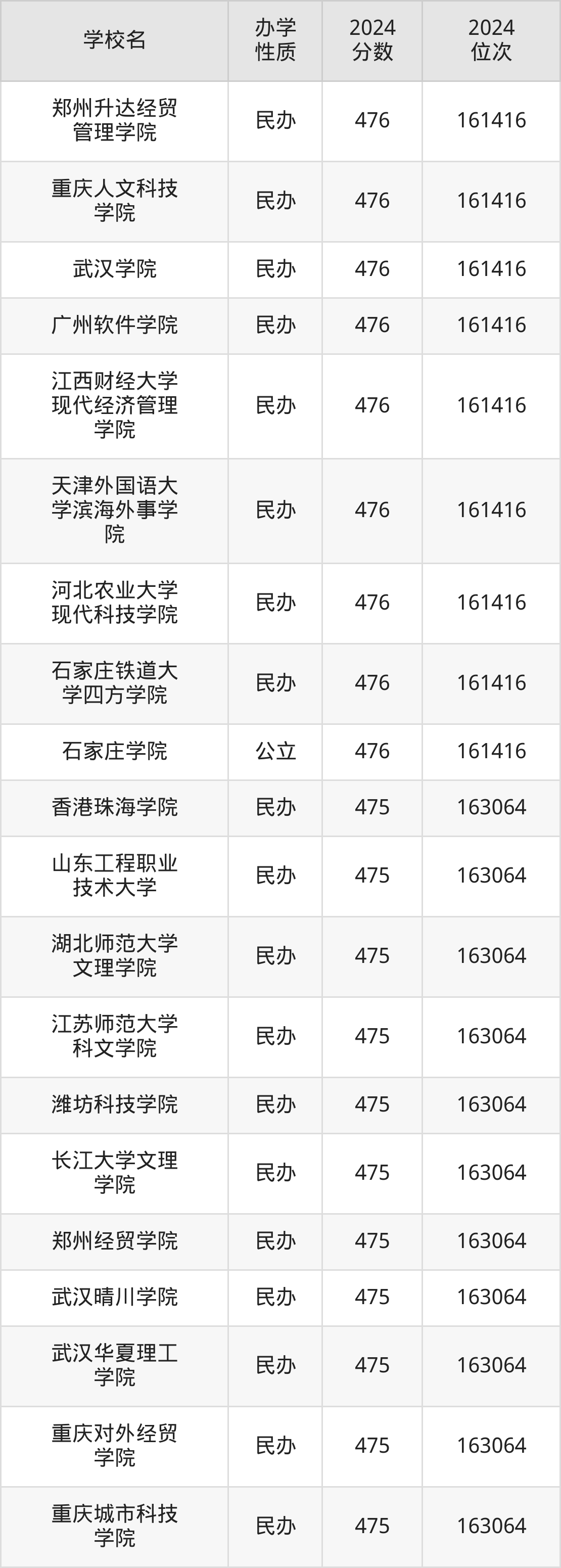 | 武汉华夏理工 学院 | 475 | 163064 |