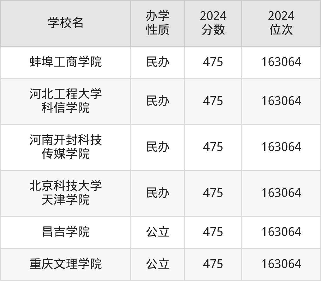 | 北京科技大学 天津学院 | 475 | 163064 |