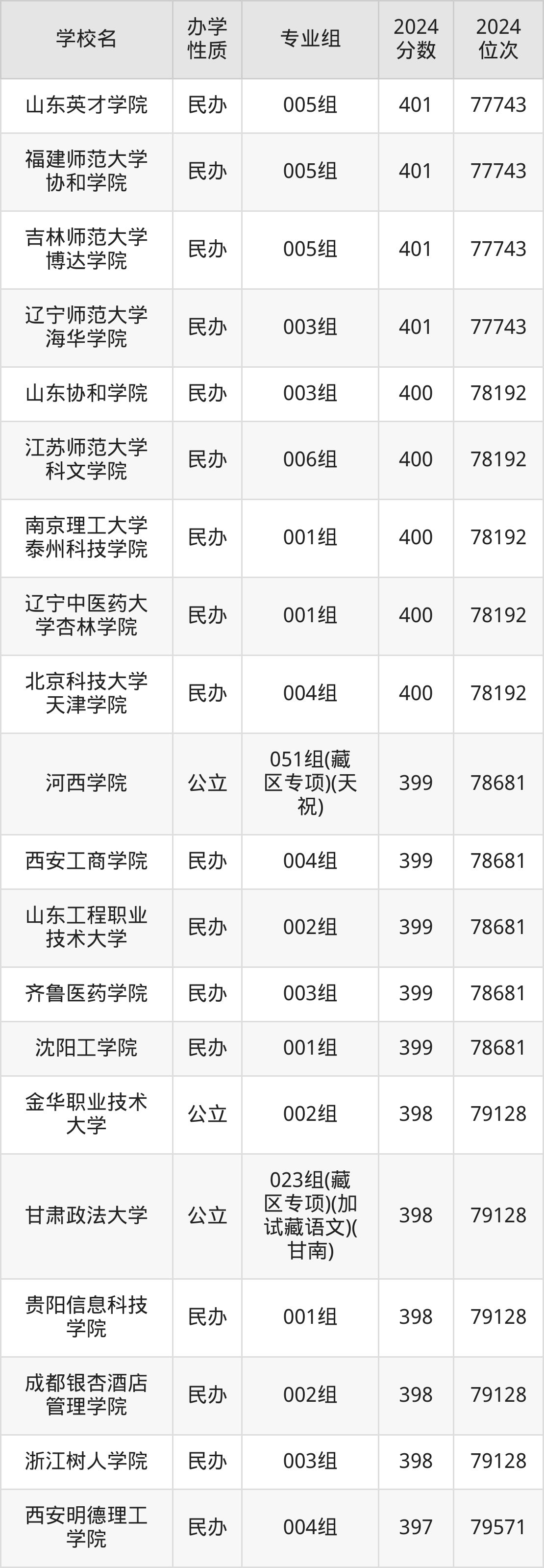 | 兰州文理学院 | 005组(藏 区专项)(少 数民族)(甘 南) | 401 | 28349 |