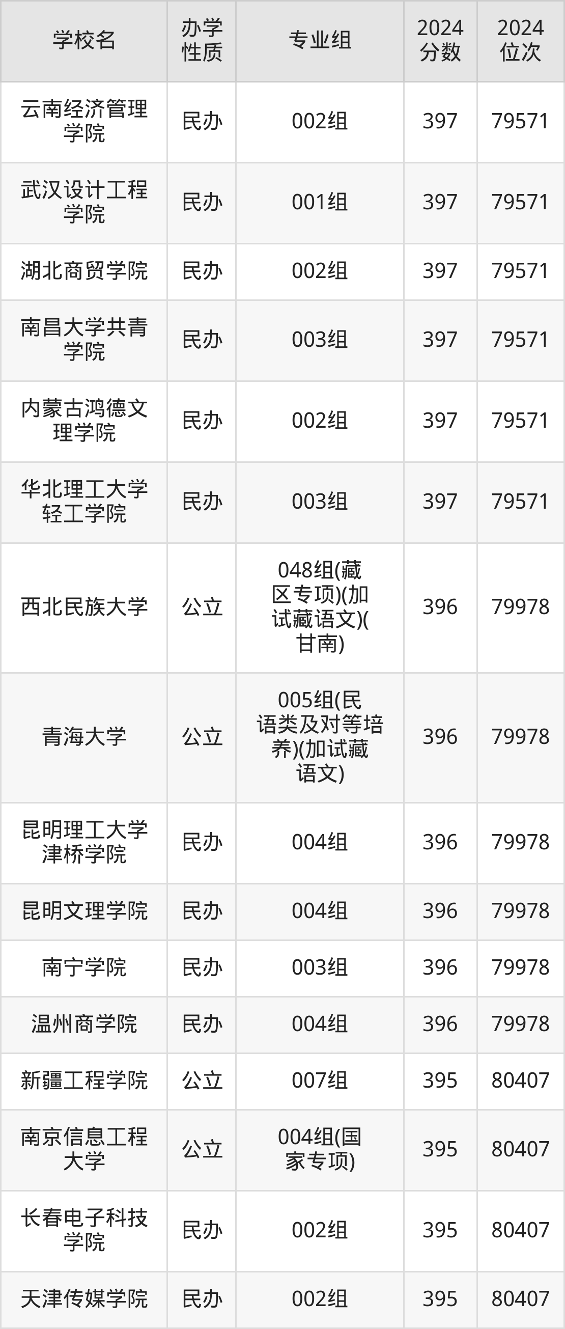 | 西北民族大学 | 048组(藏 区专项)(加 试藏语文)( 甘南) | 396 | 79978 |