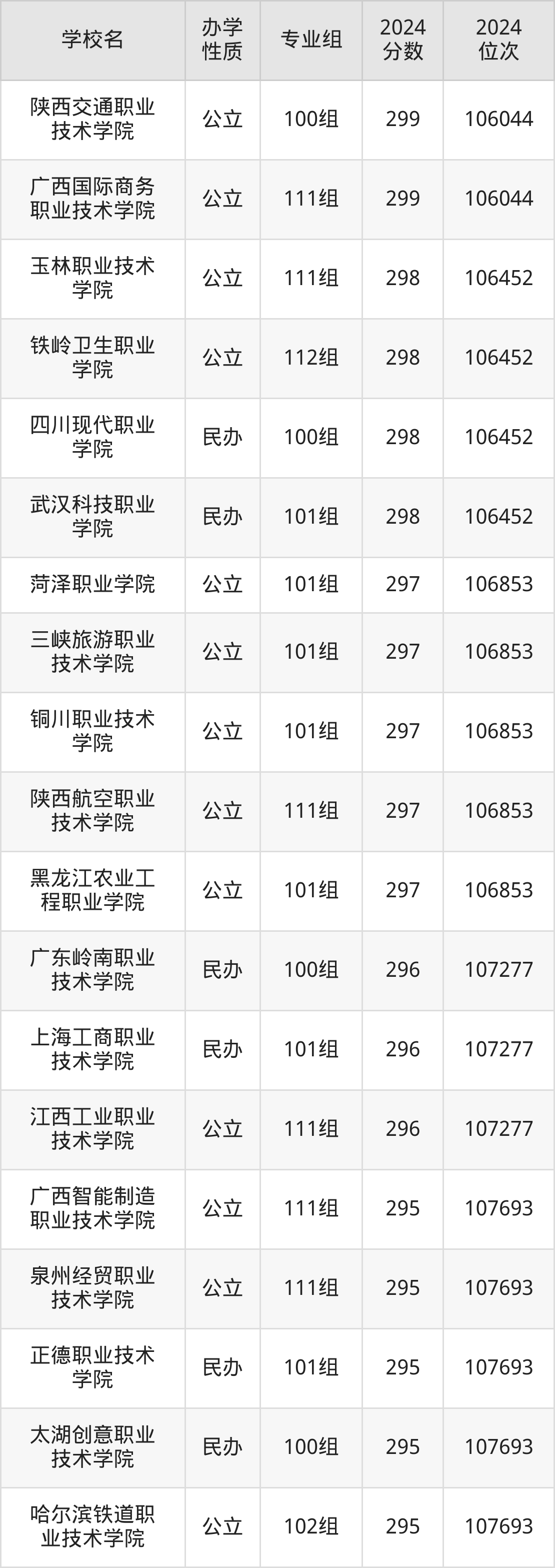 | 广西国际商务 职业技术学院 | 111组 | 299 | 106044 |