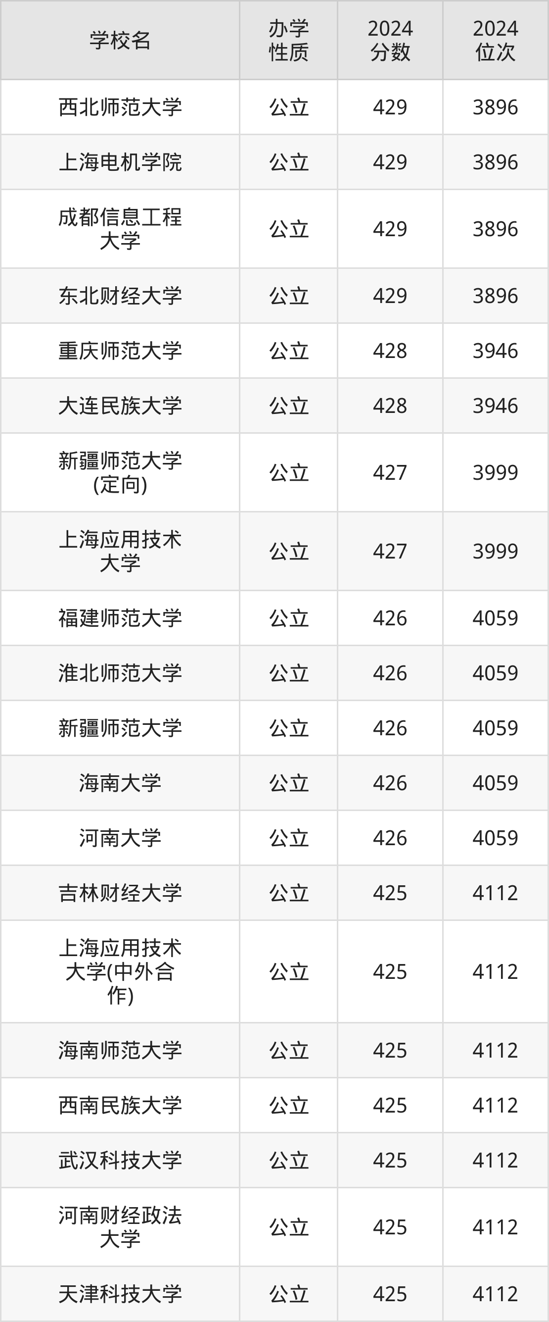 | 学校名 | 2024 分数 | 2024 位次 |