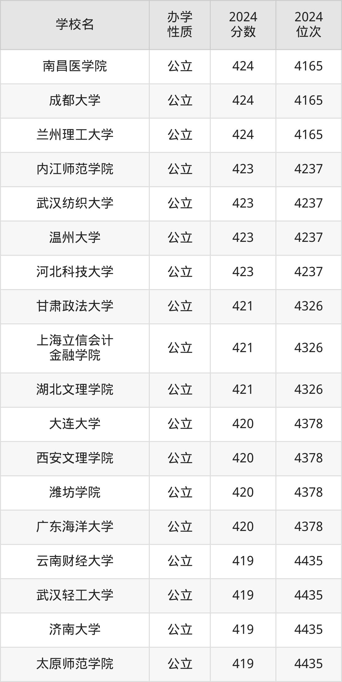 | 南昌医学院 | 424 | 4165 |