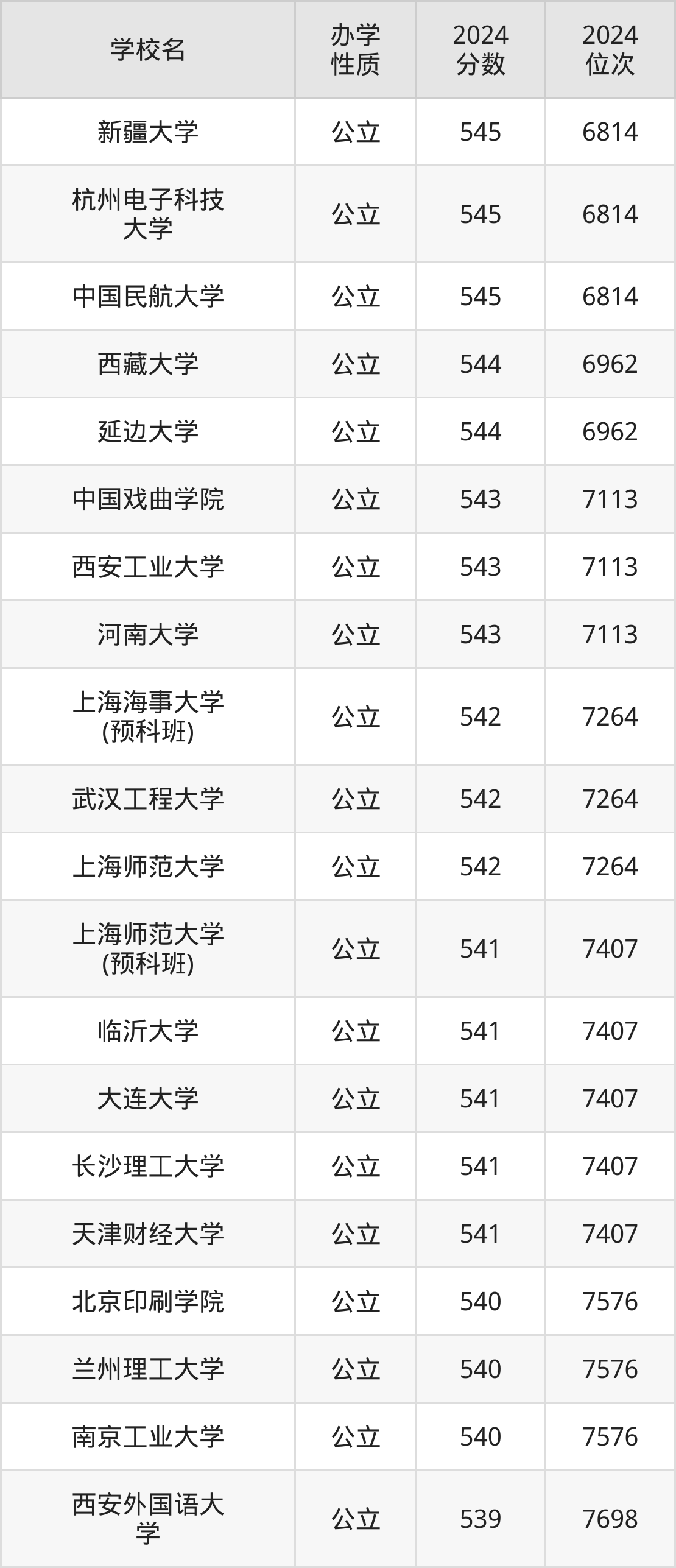 | 学校名 | 2024 分数 | 2024 位次 |