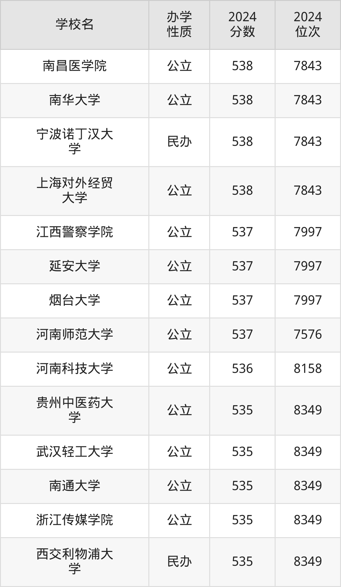 | 南昌医学院 | 538 | 7843 |