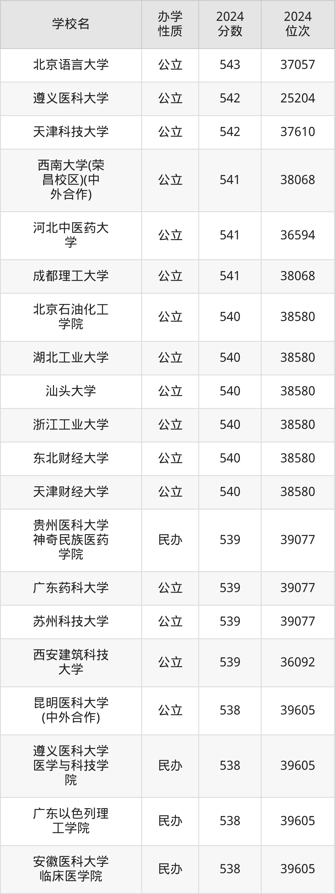 | 昆明医科大学 (中外合作) | 538 | 39605 |
