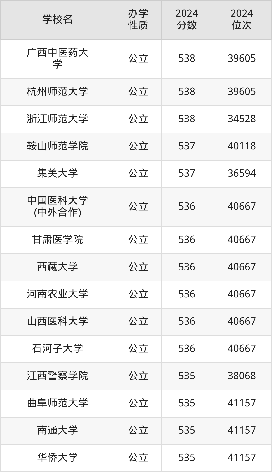| 广西中医药大 学 | 538 | 39605 |