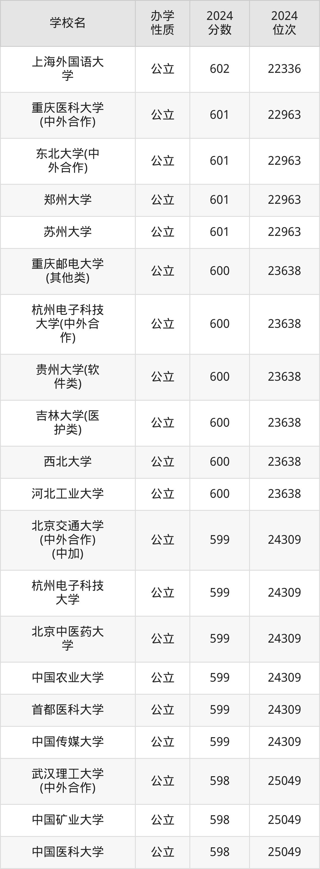 根据2024年河南的录取数据来看,601分的考生可以上西北农林科技大学、吉林大学、山东大学(威海)等985大学,不过理科和文科的院校名单有所不同,本文就分科类整理出河南601分能上的985大学名单。