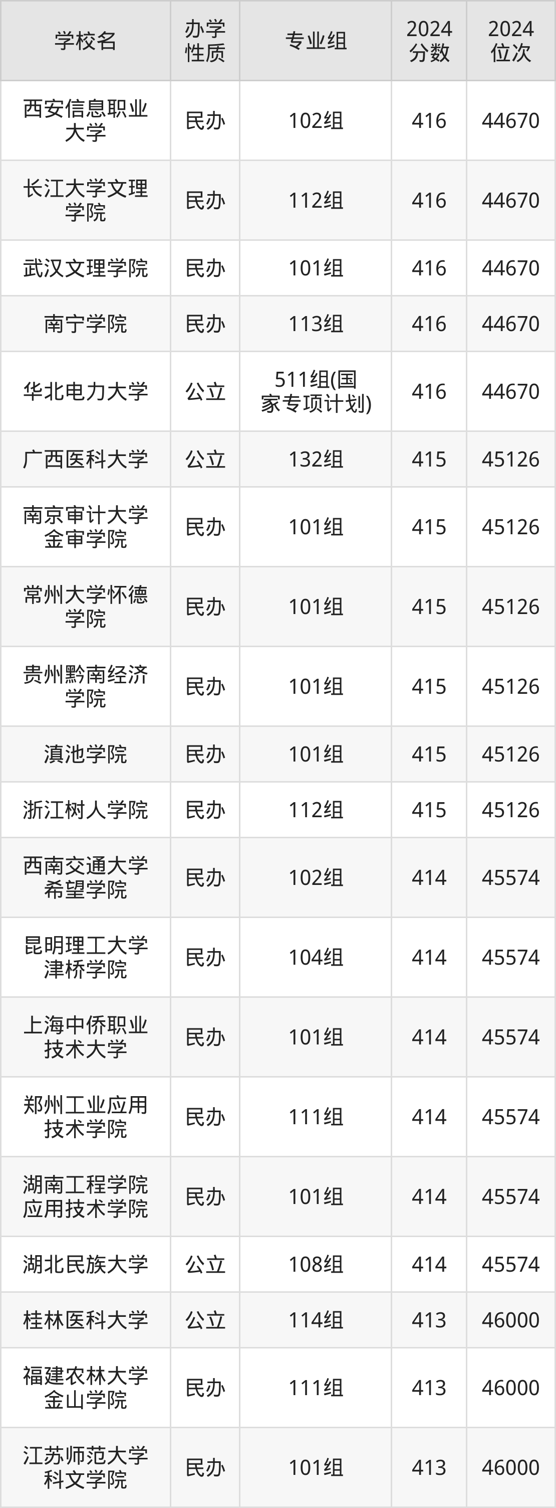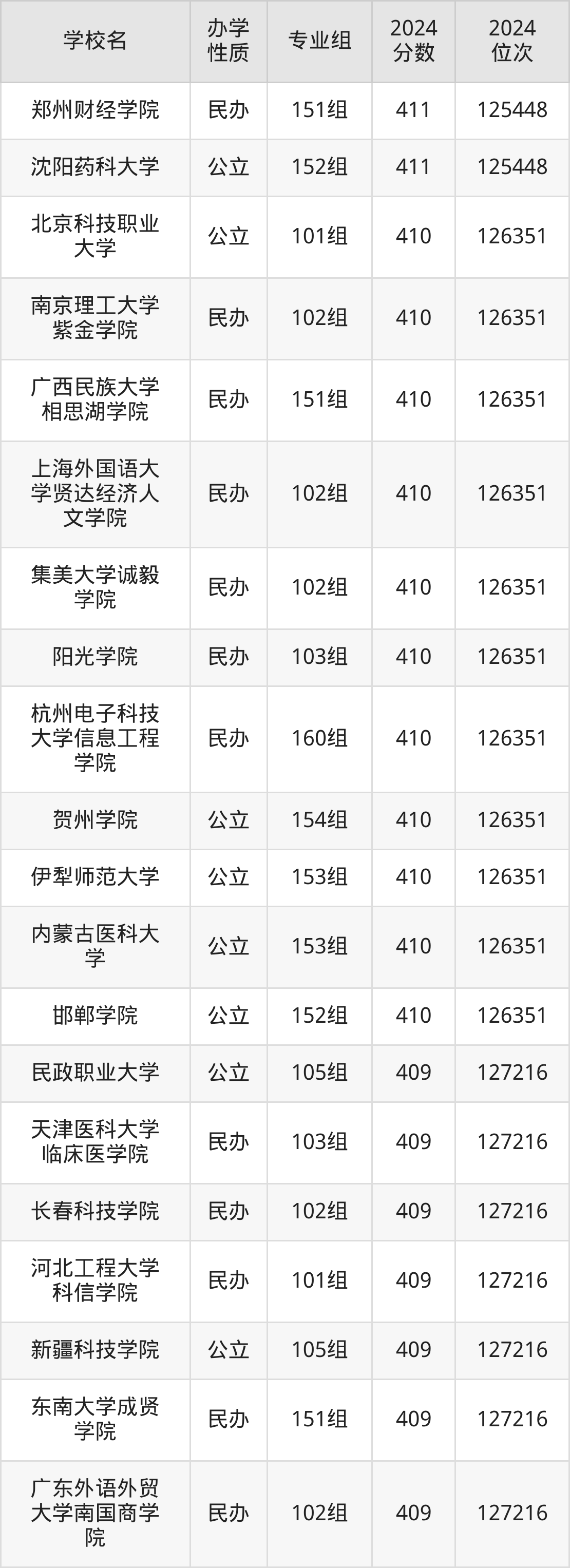 | 学校名 | 专业组 | 2024 分数 | 2024 位次 |