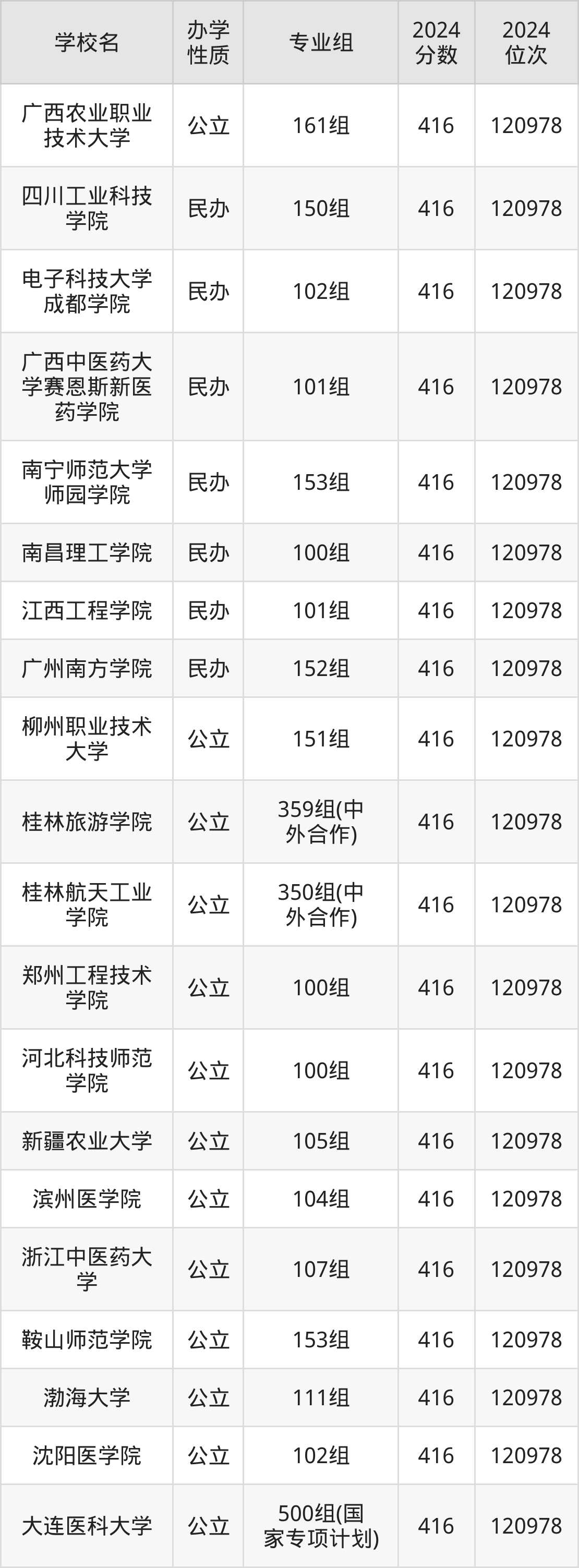 | 大连医科大学 | 500组(国 家专项计划) | 416 | 120978 |