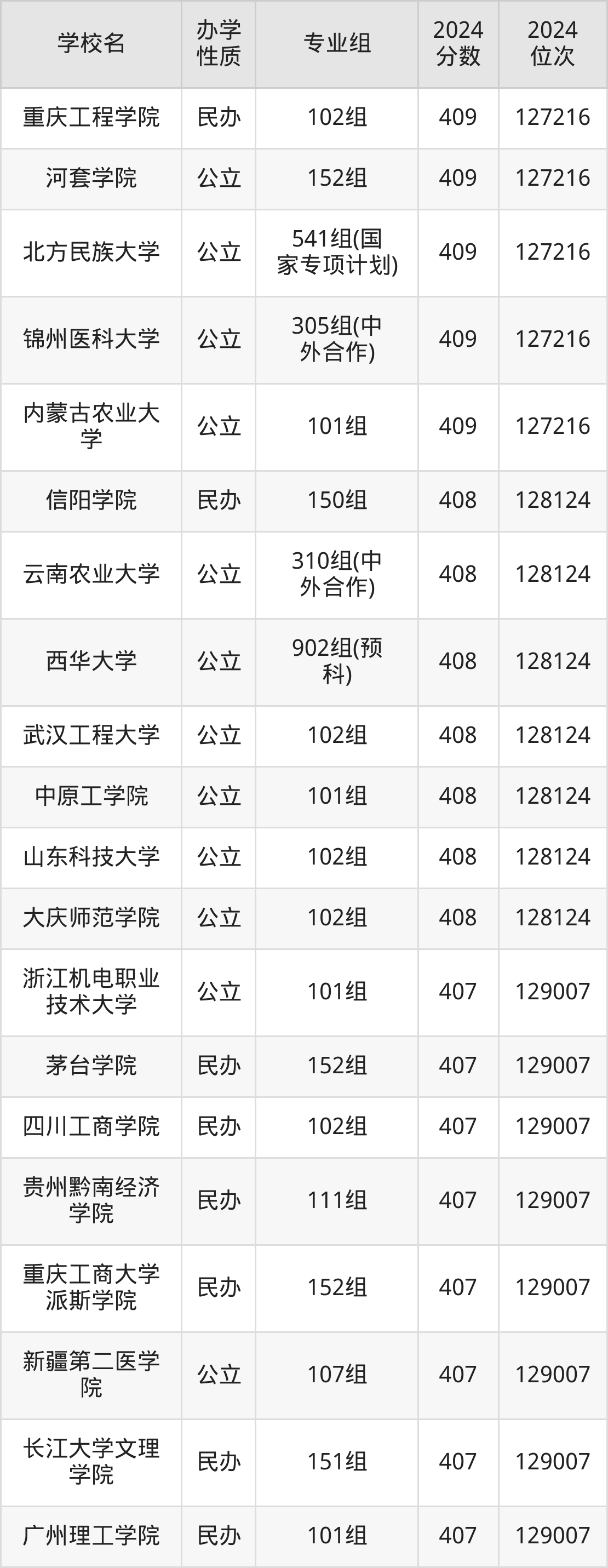 | 西华大学 | 902组(预 科) | 408 | 128124 |