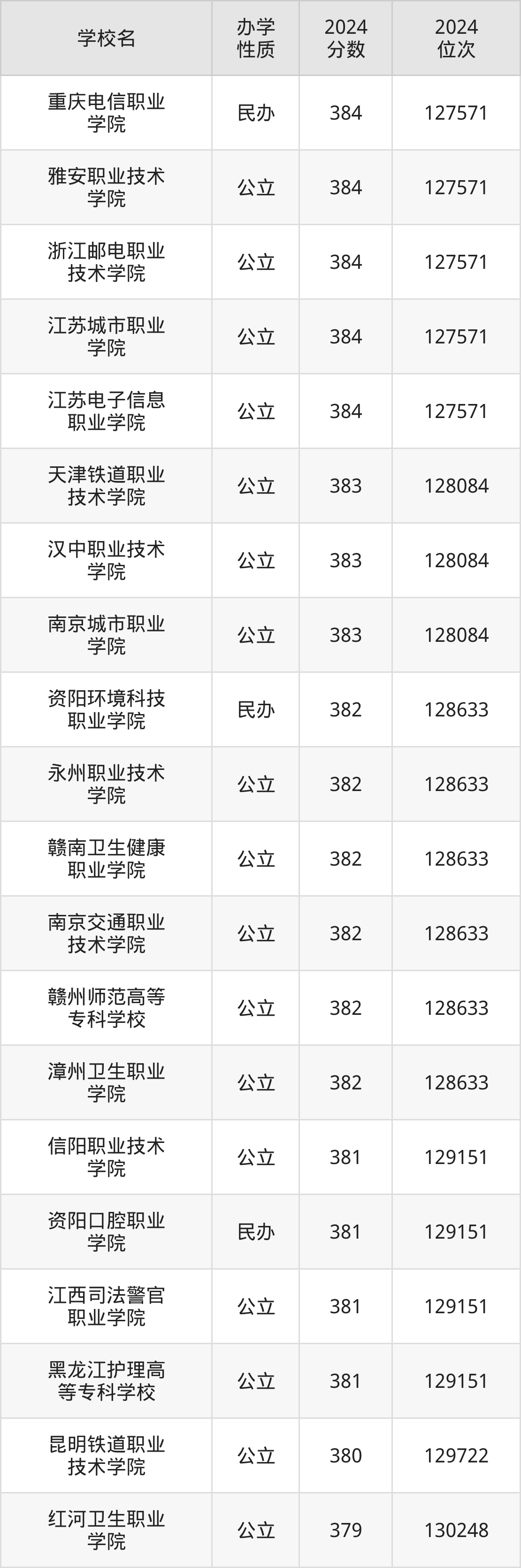 | 赣南卫生健康 职业学院 | 382 | 128633 |