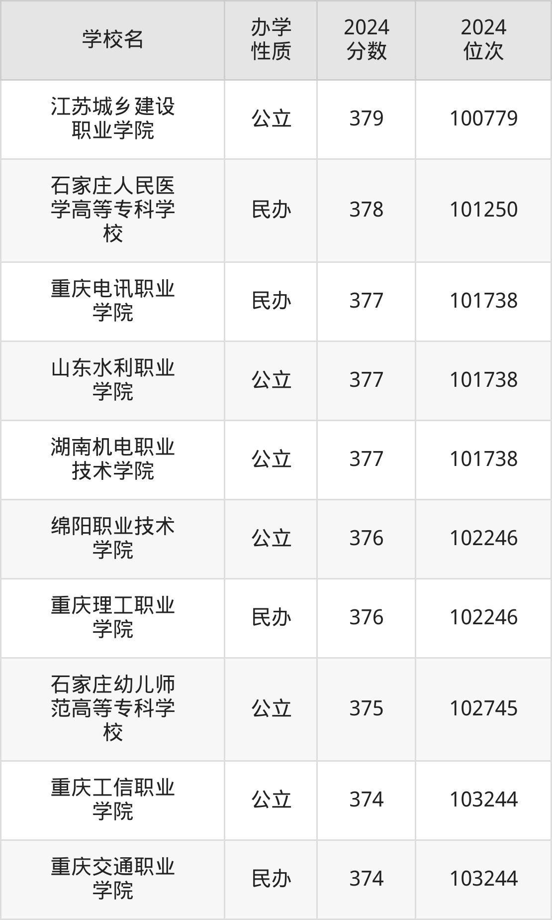 | 重庆电讯职业 学院 | 377 | 101738 |
