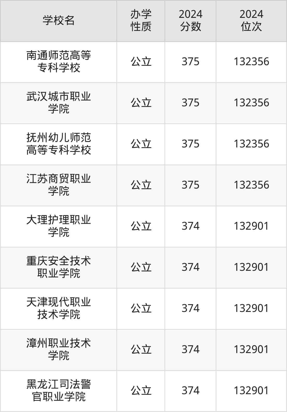 | 黑龙江司法警 官职业学院 | 374 | 132901 |