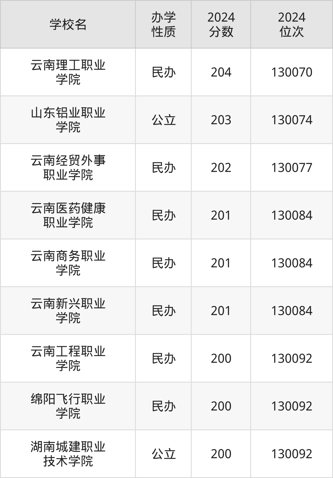 | 云南城市建设 职业学院 | 200 | 173146 |