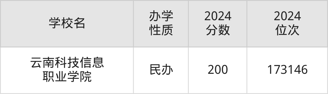 | 云南科技信息 职业学院 | 200 | 173146 |