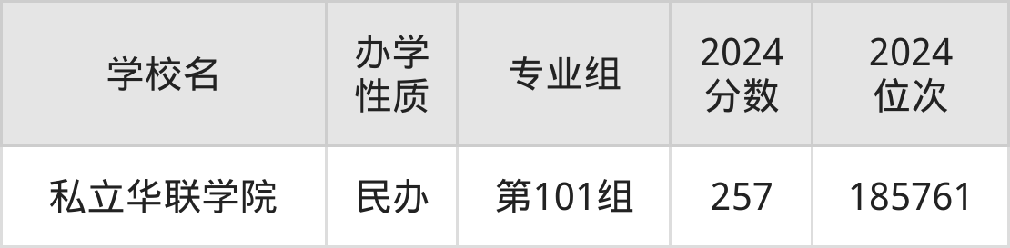 | 私立华联学院 | 第101组 | 257 | 185761 |