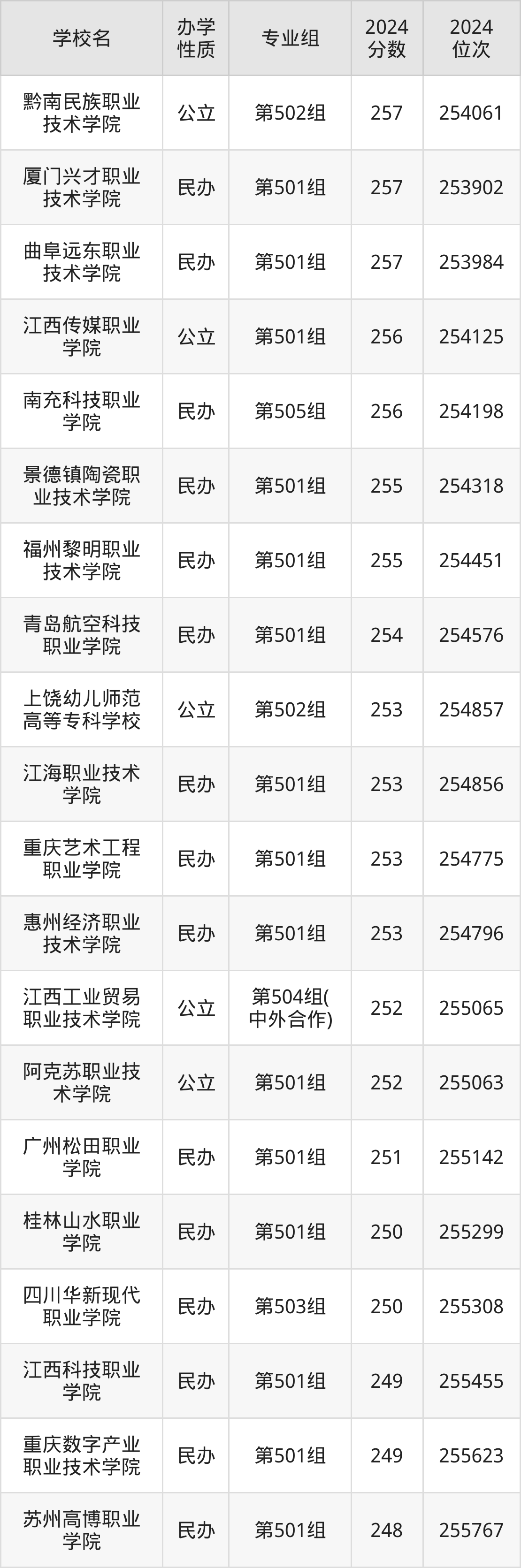 | 四川华新现代 职业学院 | 第503组 | 250 | 255308 |