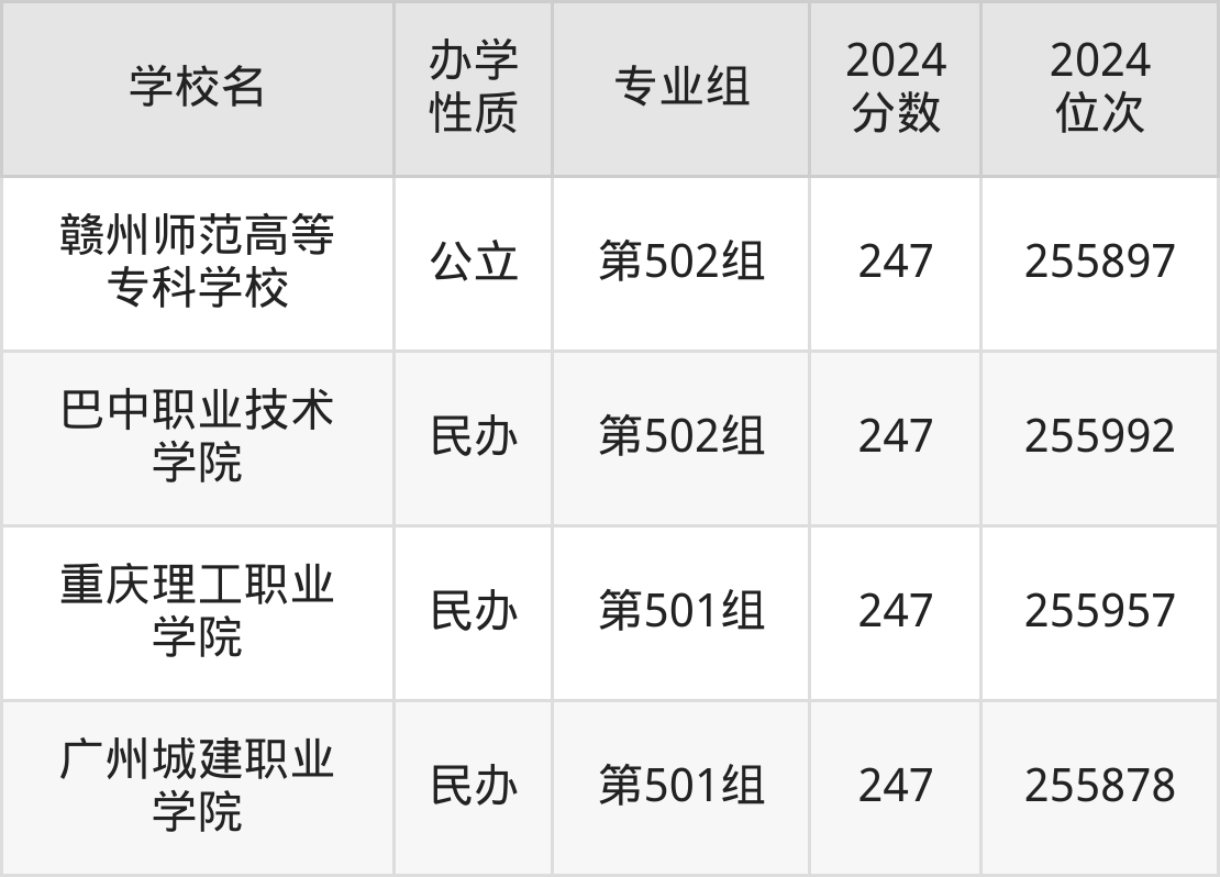 二、江西省252分左右的专科大学