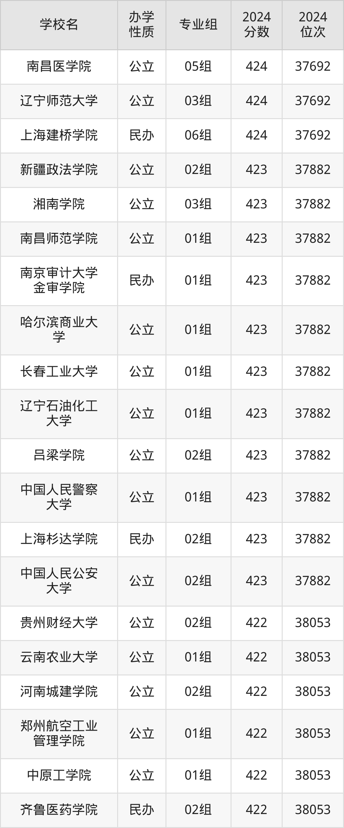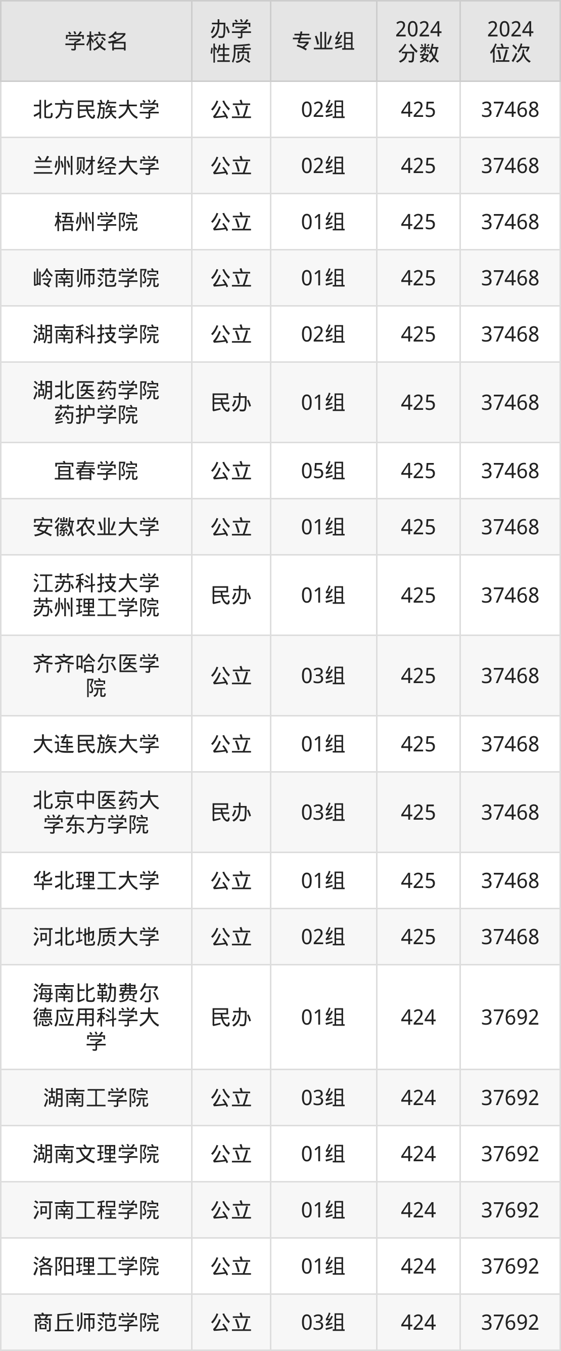 2024年上海420分考生能上北方民族大学、兰州财经大学、梧州学院、岭南师范学院、湖南科技学院等99所二本院校,具体录取分数线及位次为: