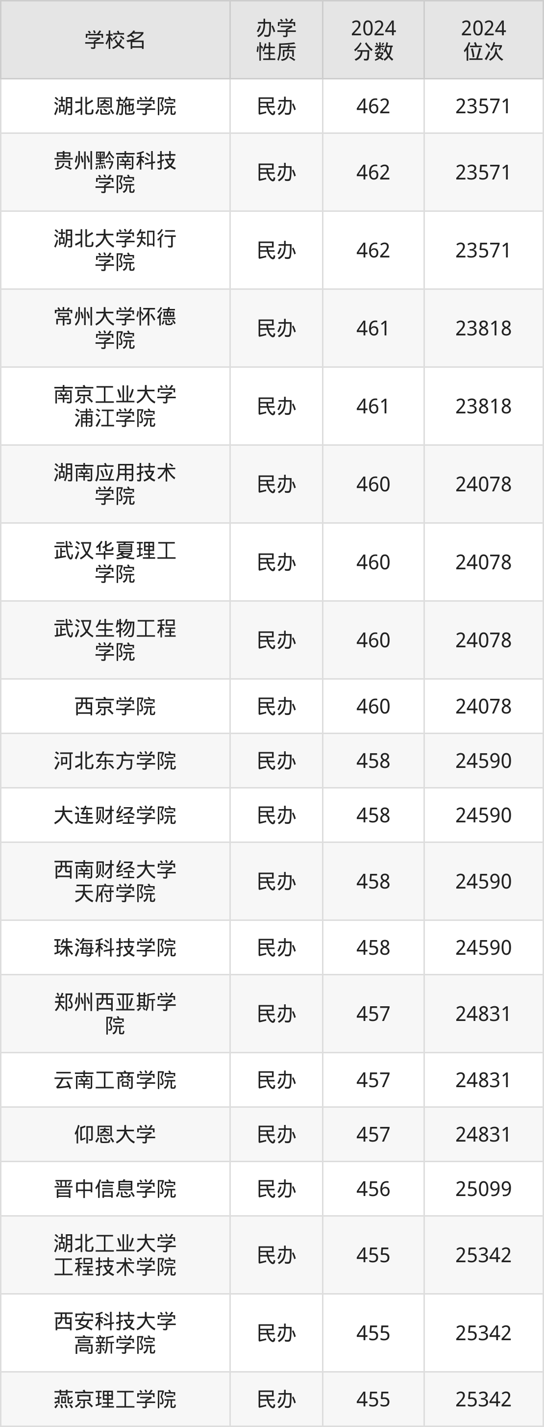 | 武汉华夏理工 学院 | 460 | 24078 |