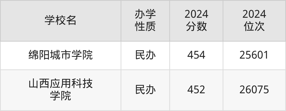 | 绵阳城市学院 | 454 | 25601 |