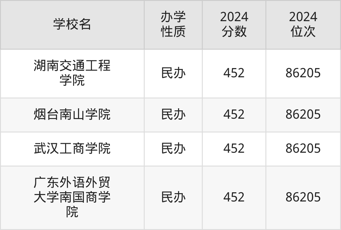 | 湖南交通工程 学院 | 452 | 86205 |