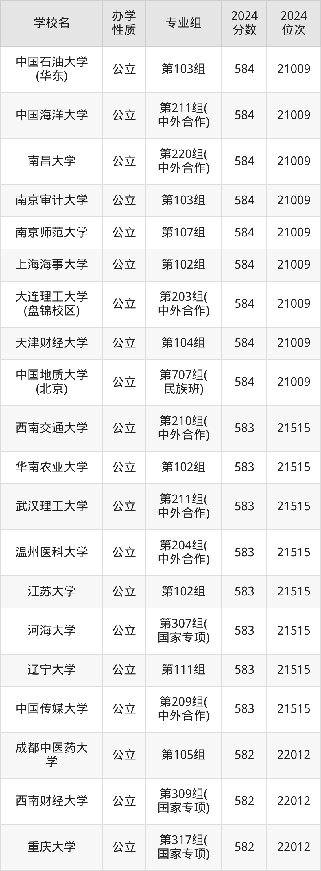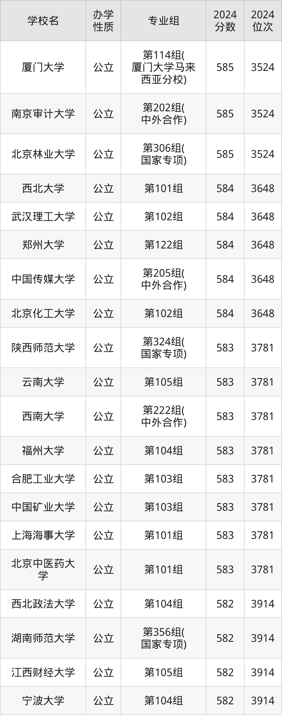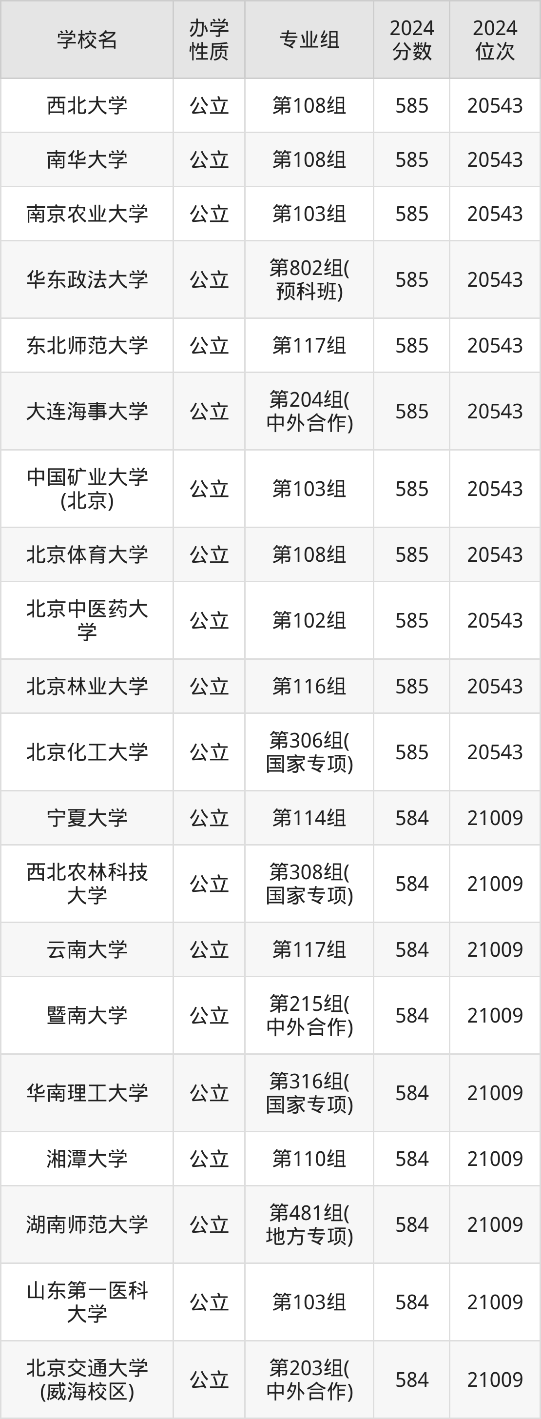 | 西北农林科技 大学 | 第308组( 国家专项) | 584 | 21009 |