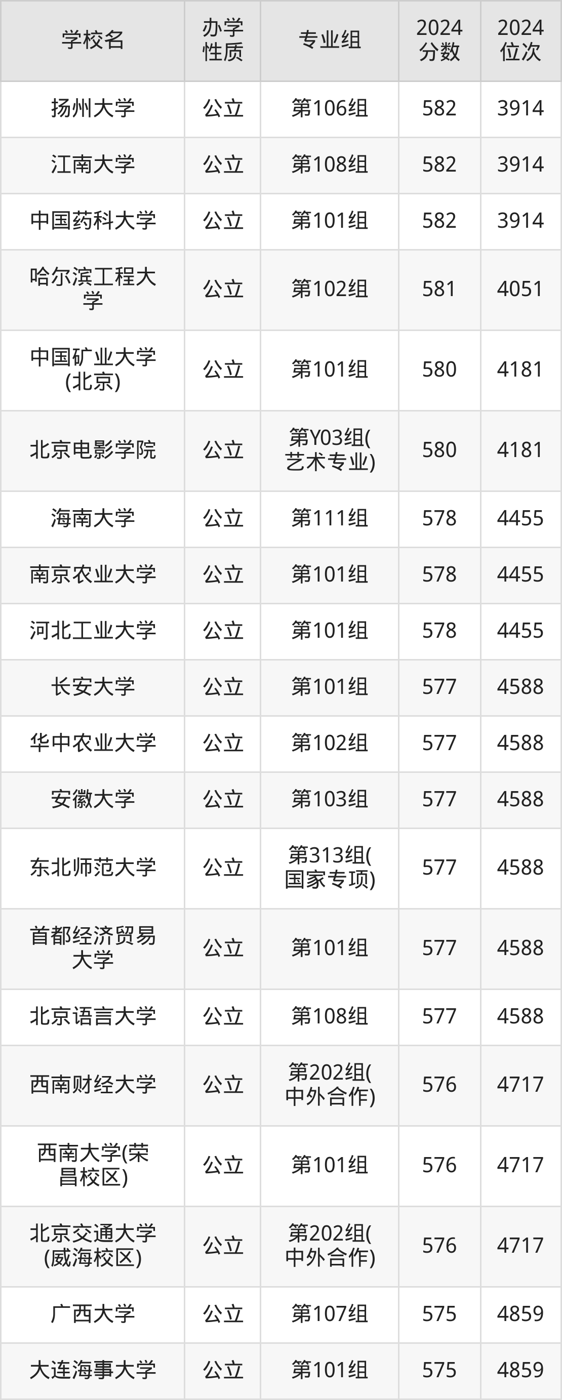 | 学校名 | 专业组 | 2024 分数 | 2024 位次 |