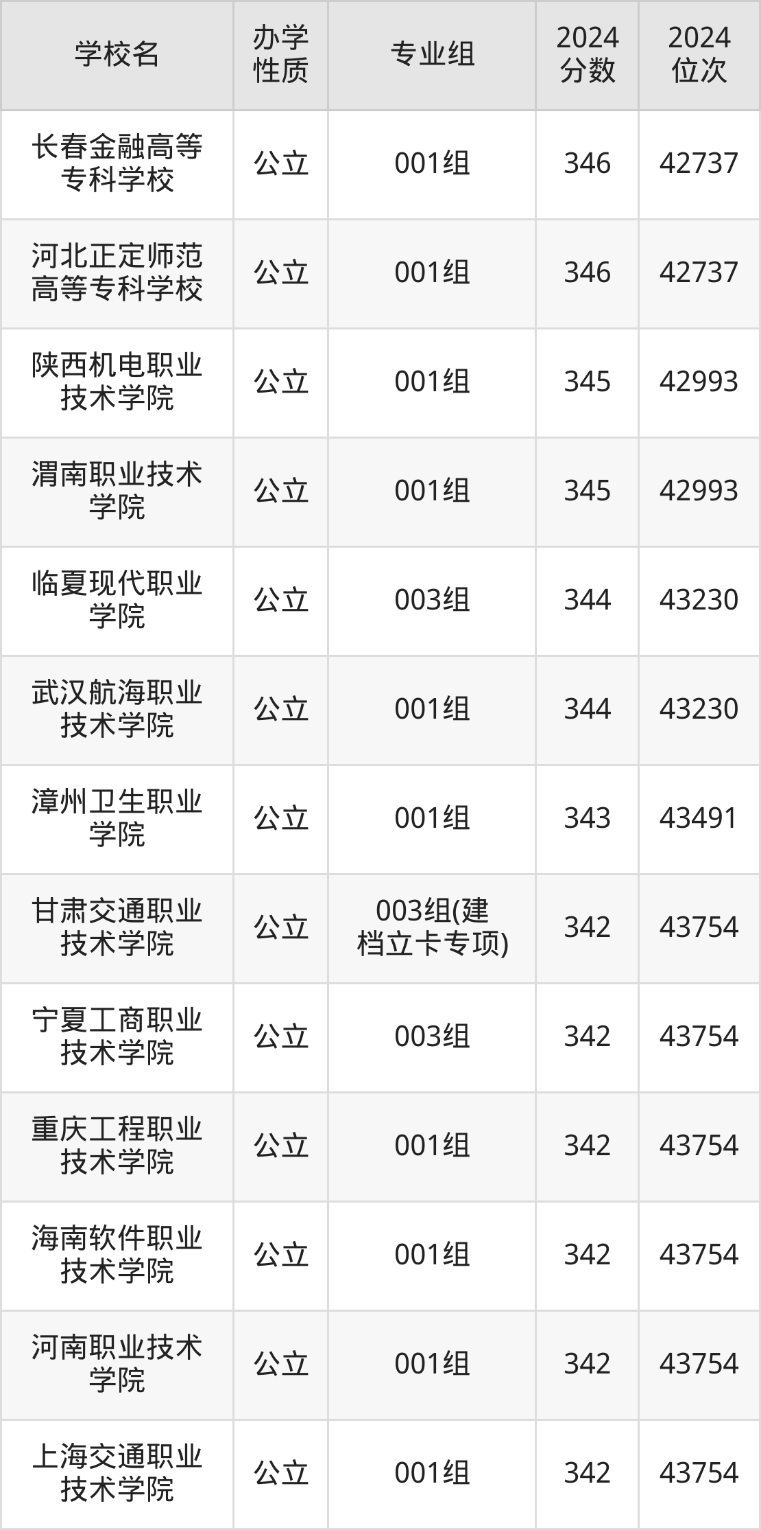根据2024年甘肃的录取数据来看,347分的考生可以上青海警官职业学院、云南财经职业学院、湖北三峡职业技术学院等专科大学,不过物理类和历史类的院校名单有所不同,本文就分科类整理出甘肃347分能上的专科大学名单。