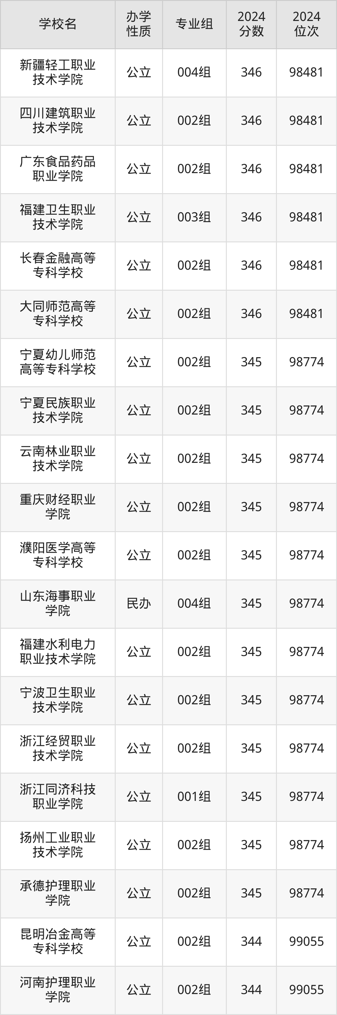 | 甘肃卫生职业 学院 | 033组(民 族专项) | 348 | 97908 |