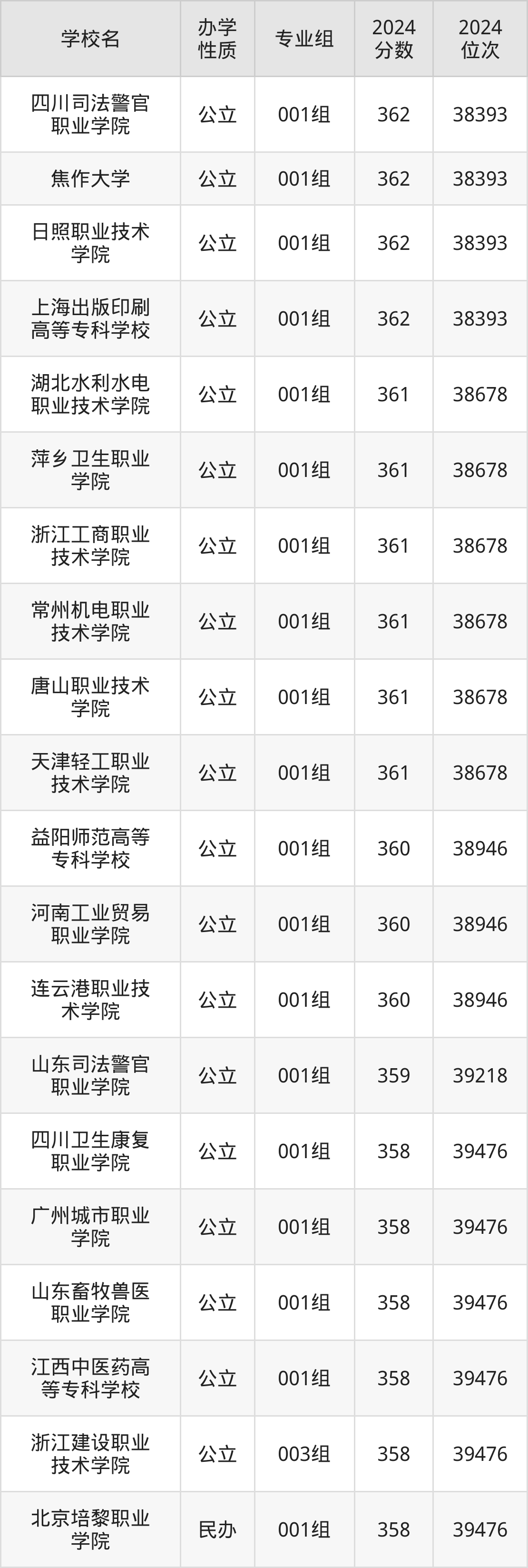 | 四川司法警官 职业学院 | 001组 | 362 | 38393 |
