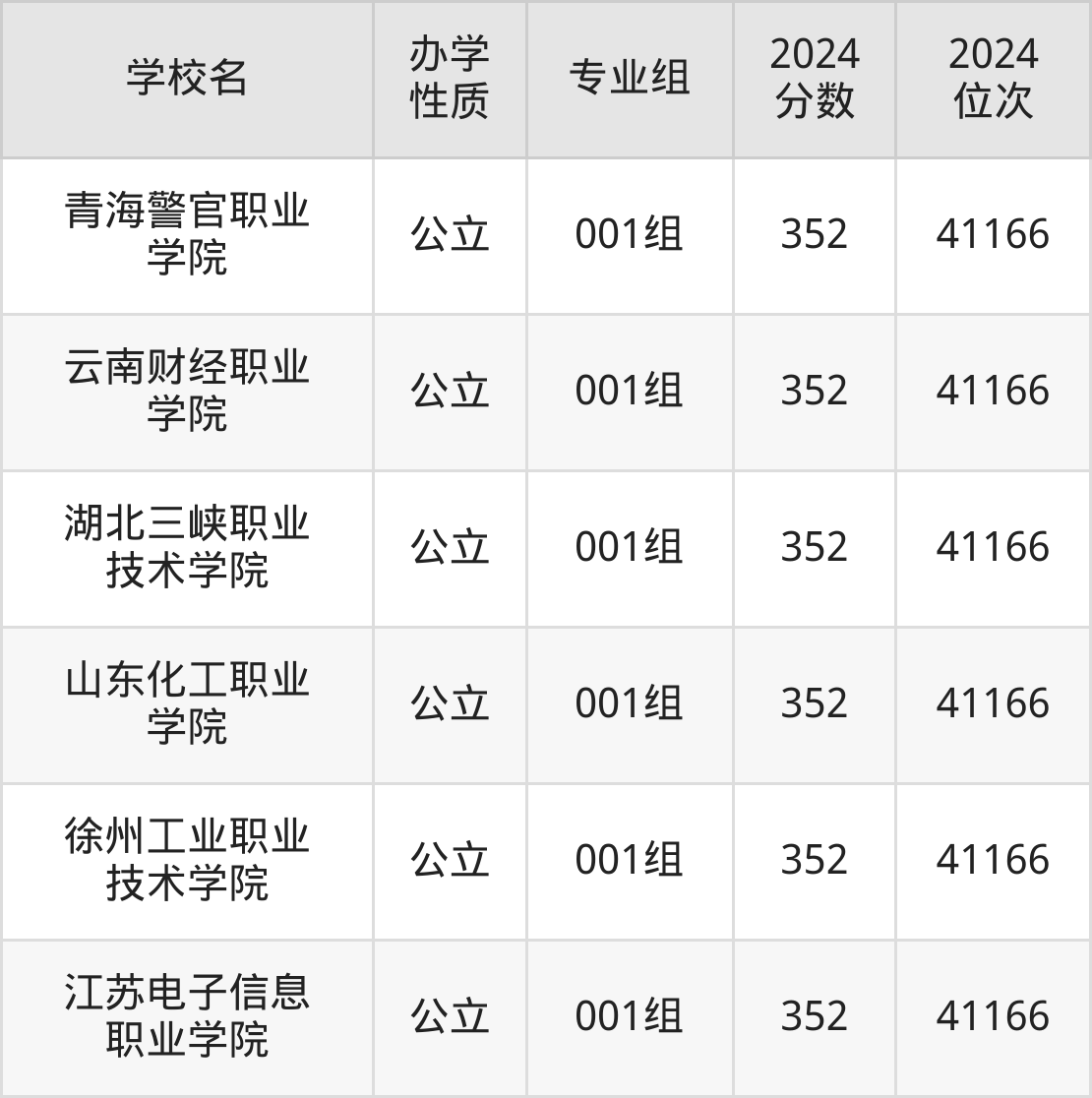 | 青海警官职业 学院 | 001组 | 352 | 41166 |