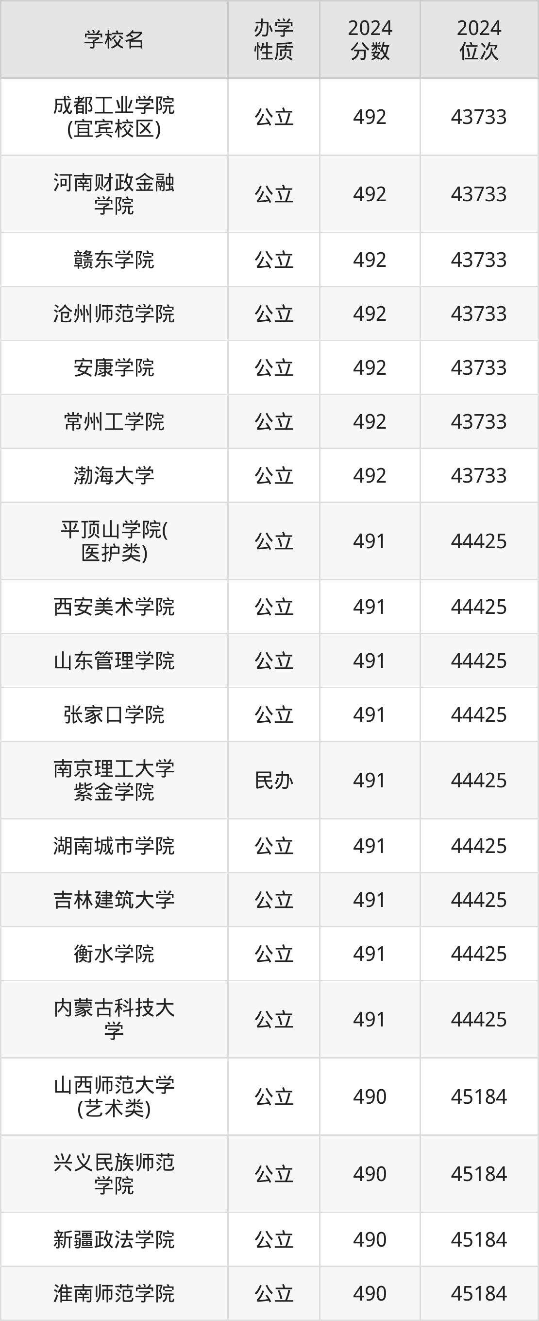 | 山西师范大学 (艺术类) | 490 | 45184 |