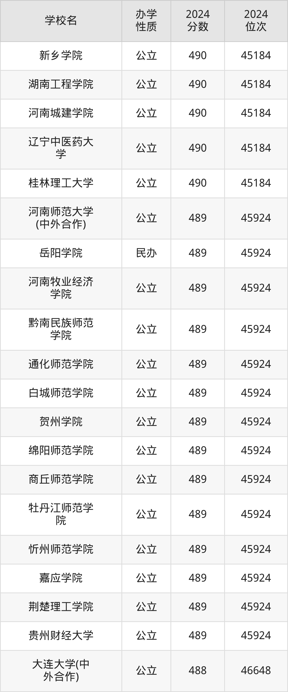 | 沈阳大学(中 外合作) | 490 | 164286 |