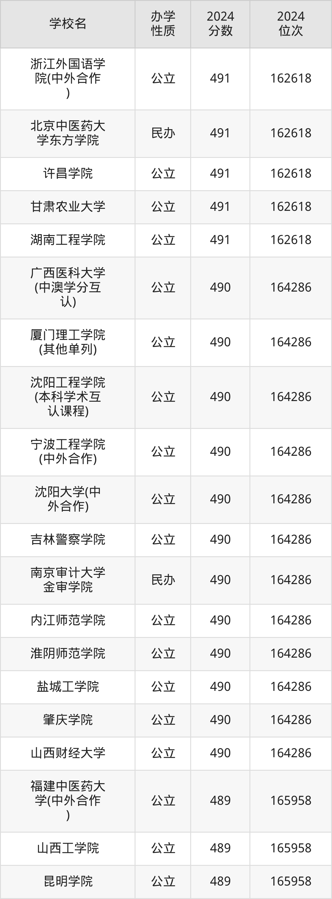 | 北京中医药大 学东方学院 | 491 | 162618 |