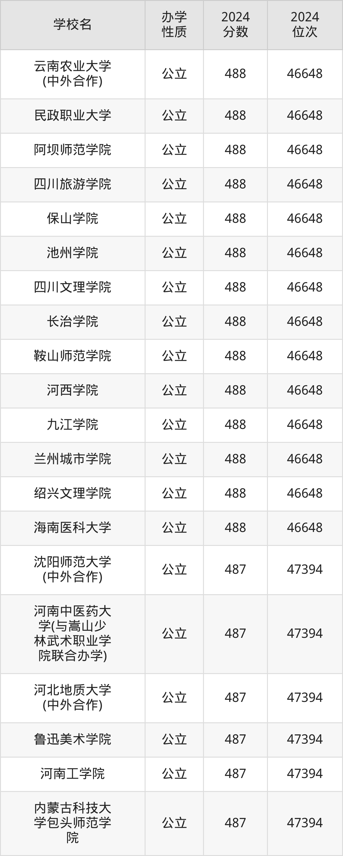 | 云南农业大学 (中外合作) | 488 | 46648 |