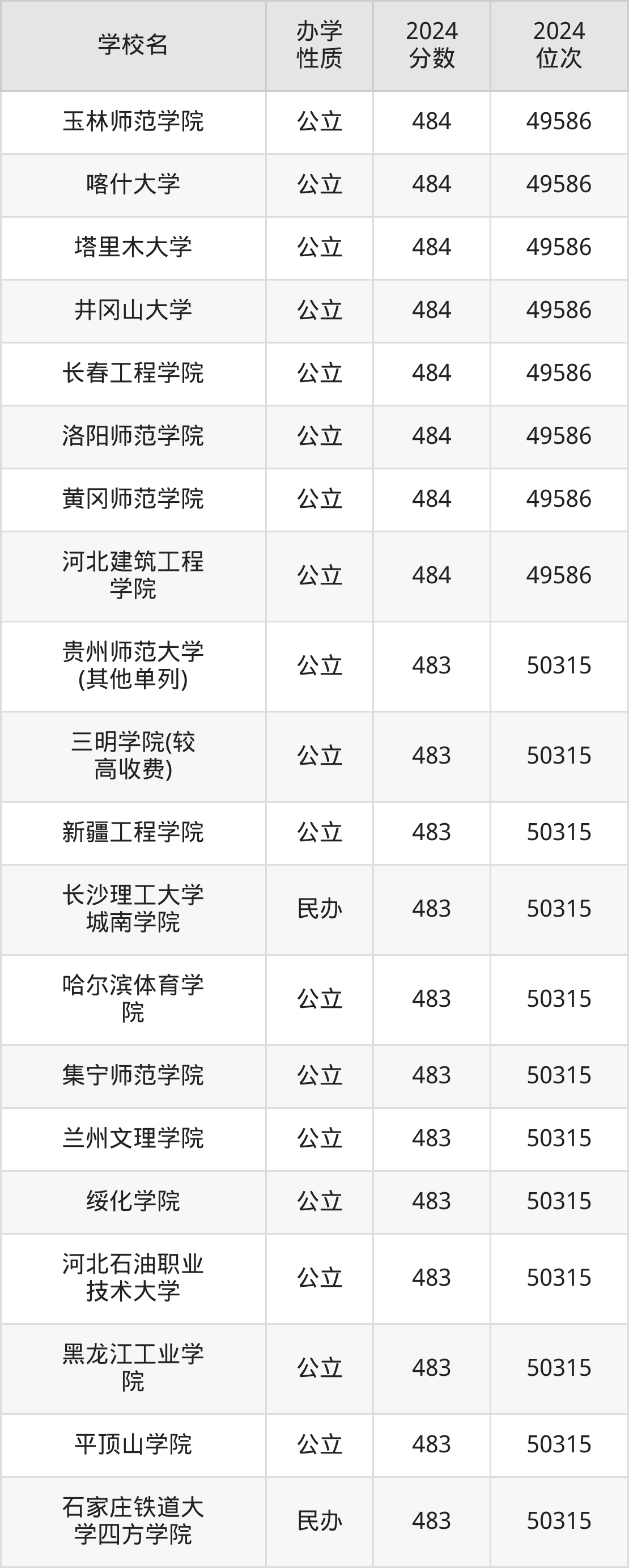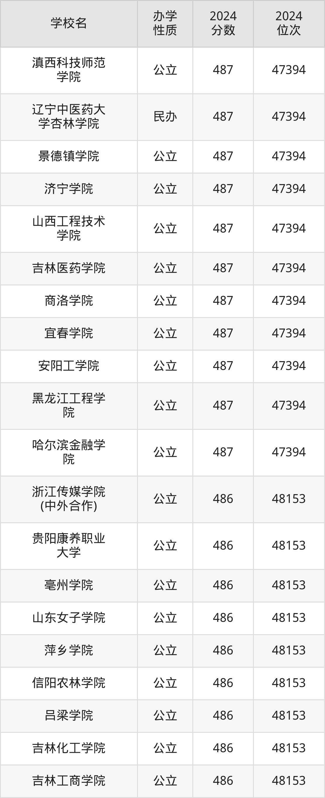 | 贵阳康养职业 大学 | 486 | 48153 |